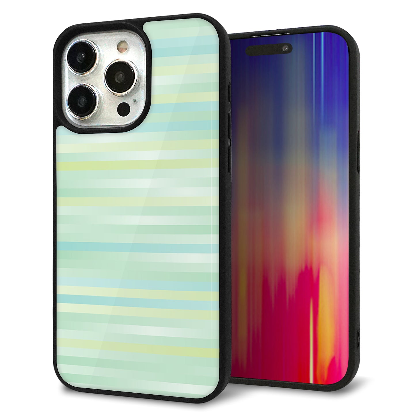 iPhone15 Pro Max 強化ガラス&TPUスマホケース ガラプリ【IB908 グラデーションボーダー_グリーン】