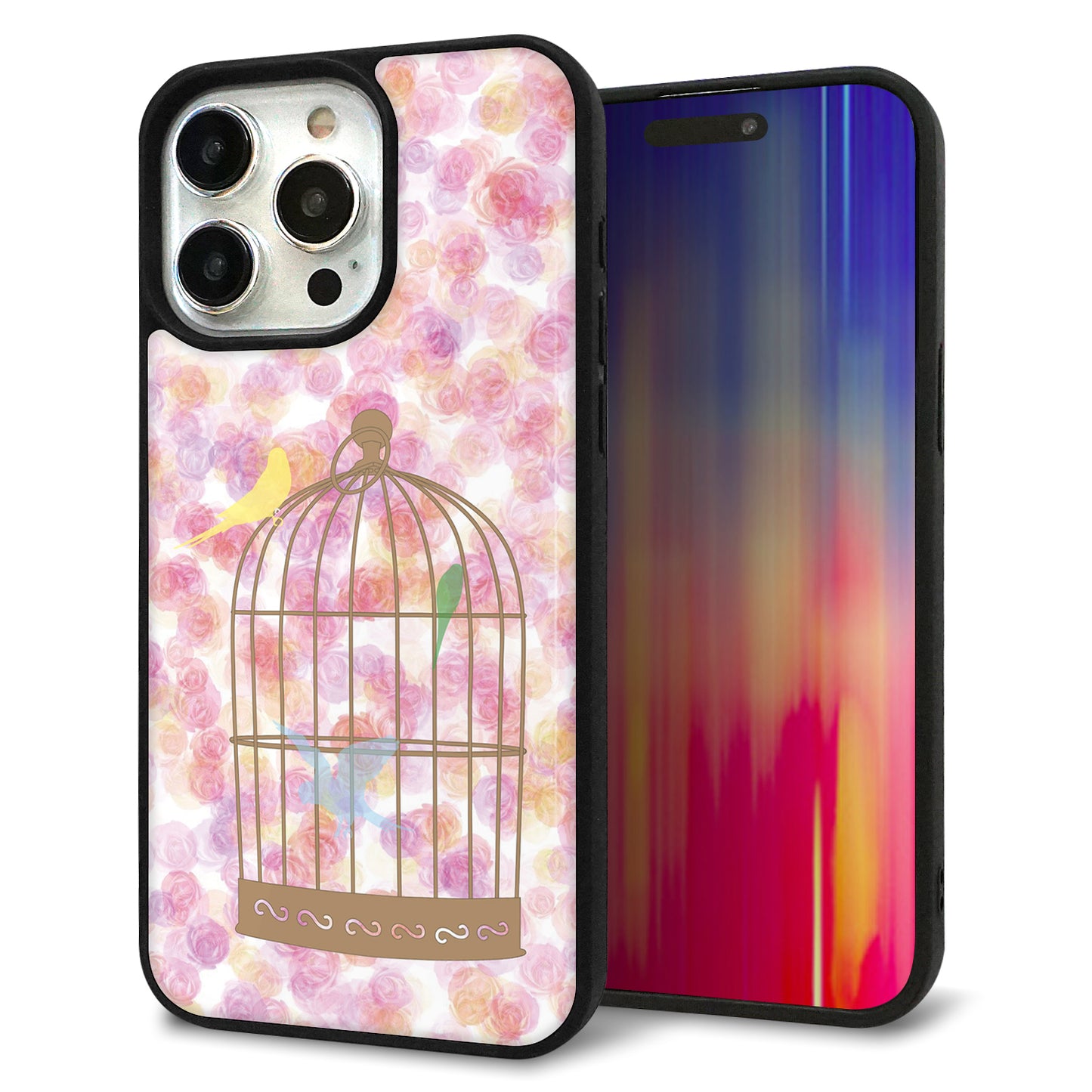 iPhone15 Pro Max 強化ガラス&TPUスマホケース ガラプリ【KM882 鳥かご】