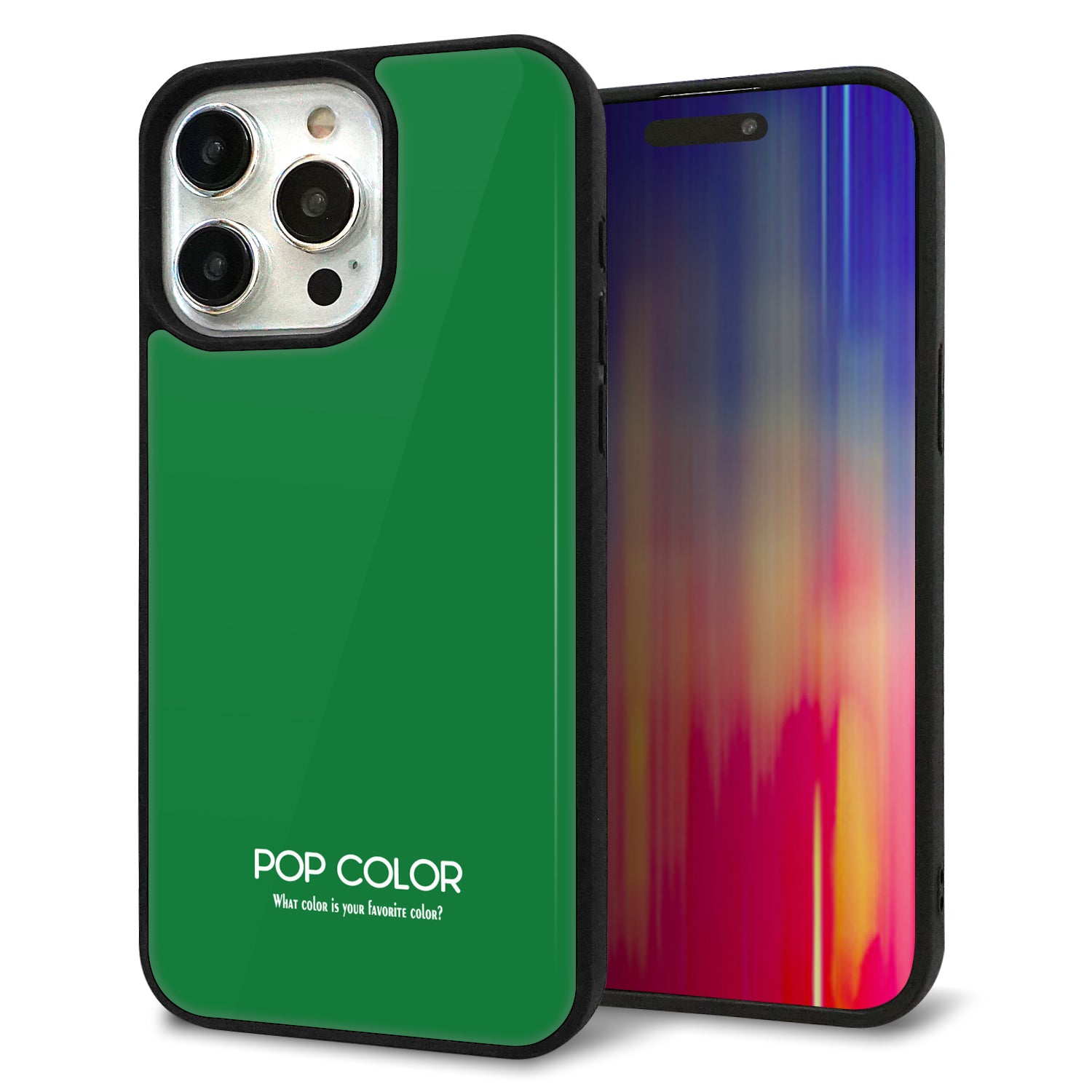 iPhone15 Pro Max 強化ガラス&TPUスマホケース ガラプリ【KM907 ポップカラー(グリーン)】