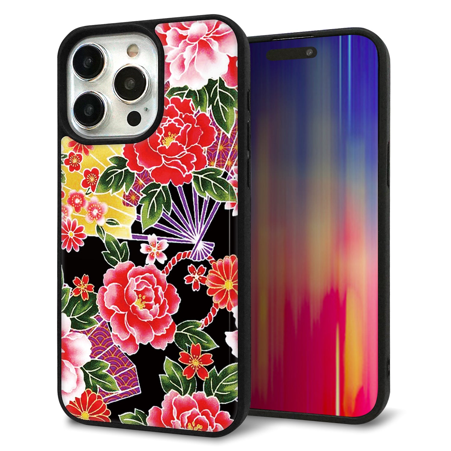 iPhone15 Pro Max 強化ガラス&TPUスマホケース ガラプリ【MA959 和柄 花 A】