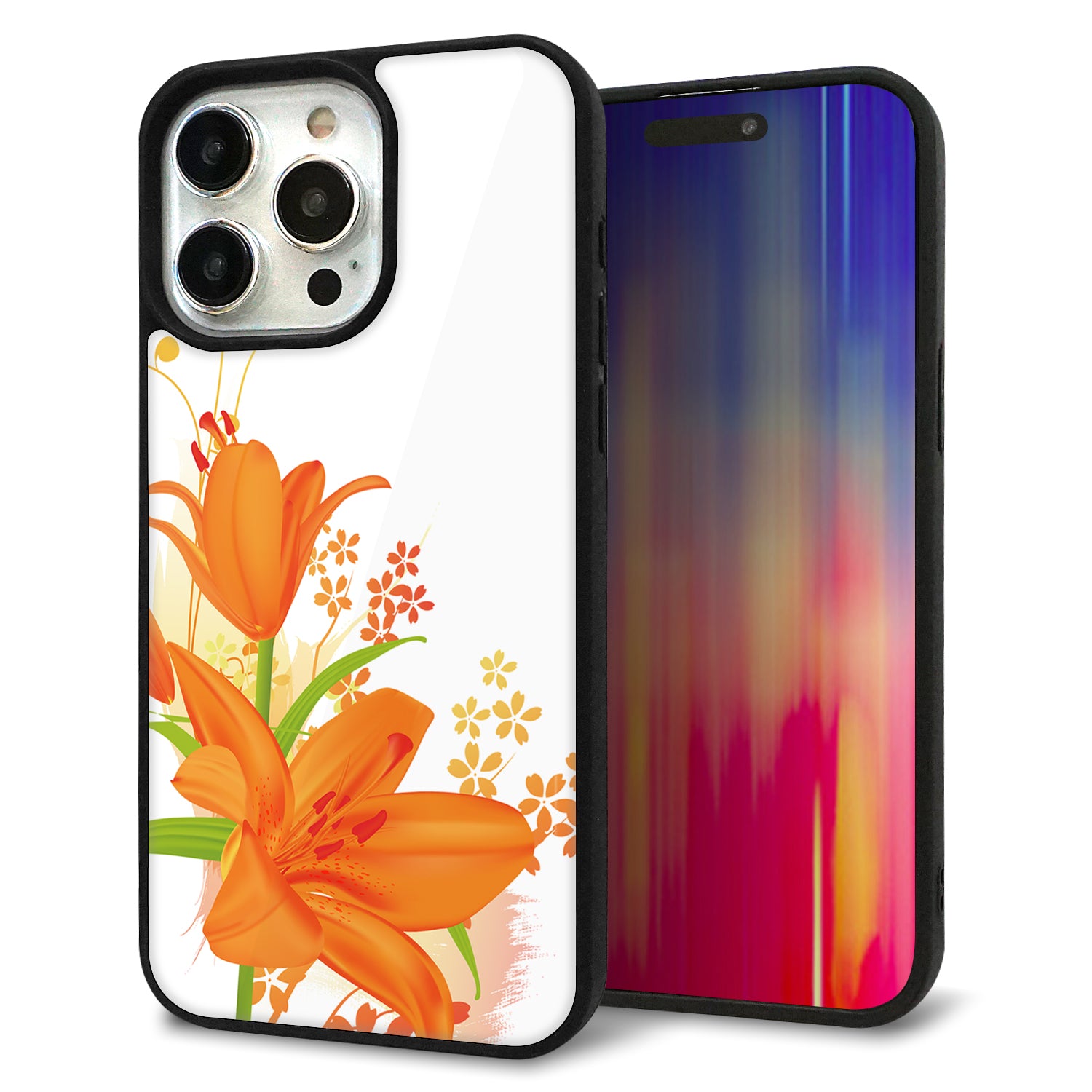 iPhone15 Pro Max 強化ガラス&TPUスマホケース ガラプリ【SC848 ユリ(オレンジ)】