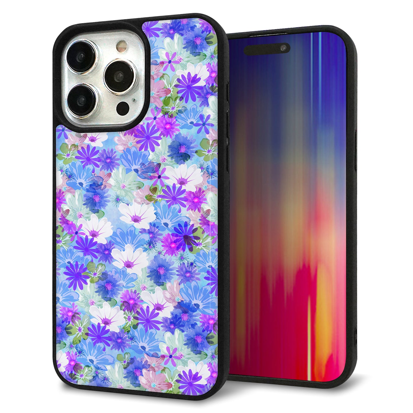 iPhone15 Pro Max 強化ガラス&TPUスマホケース ガラプリ【SC875 リバティプリント プレスドフラワー(ブルー)】