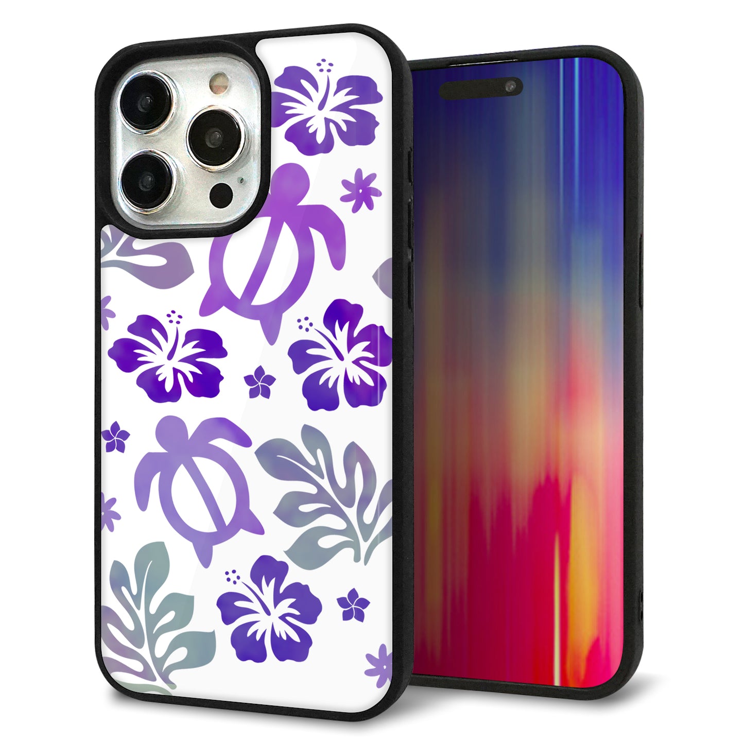 iPhone15 Pro Max 強化ガラス&TPUスマホケース ガラプリ【SC878 ハワイアンアロハホヌ(パープル)】