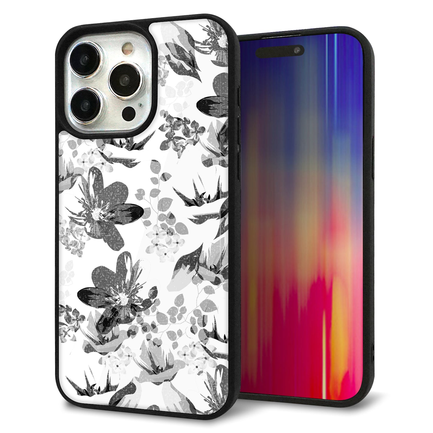 iPhone15 Pro Max 強化ガラス&TPUスマホケース ガラプリ【SC914 花柄モノトーン 03】
