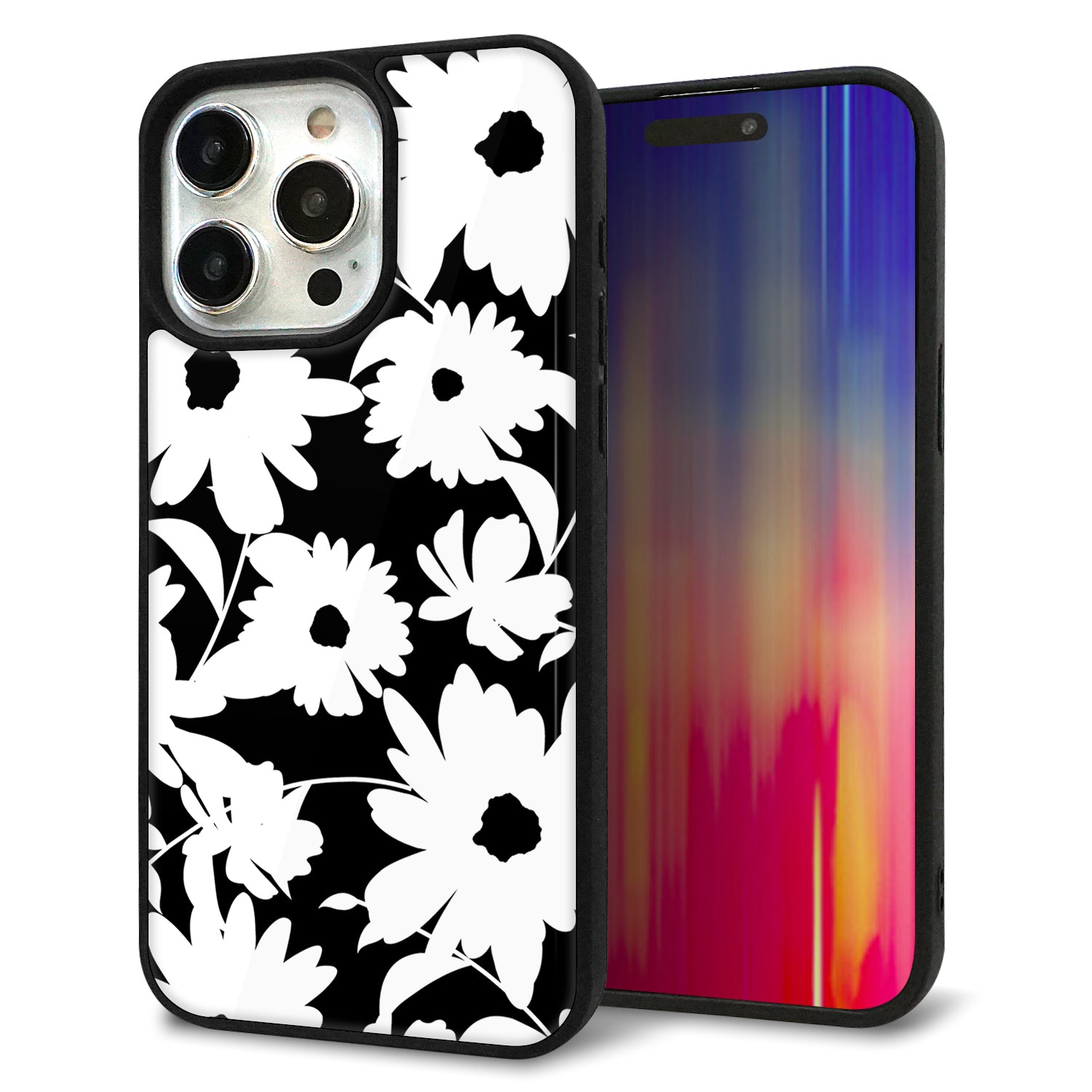 iPhone15 Pro Max 強化ガラス&TPUスマホケース ガラプリ【SC915 花柄モノトーン 04】