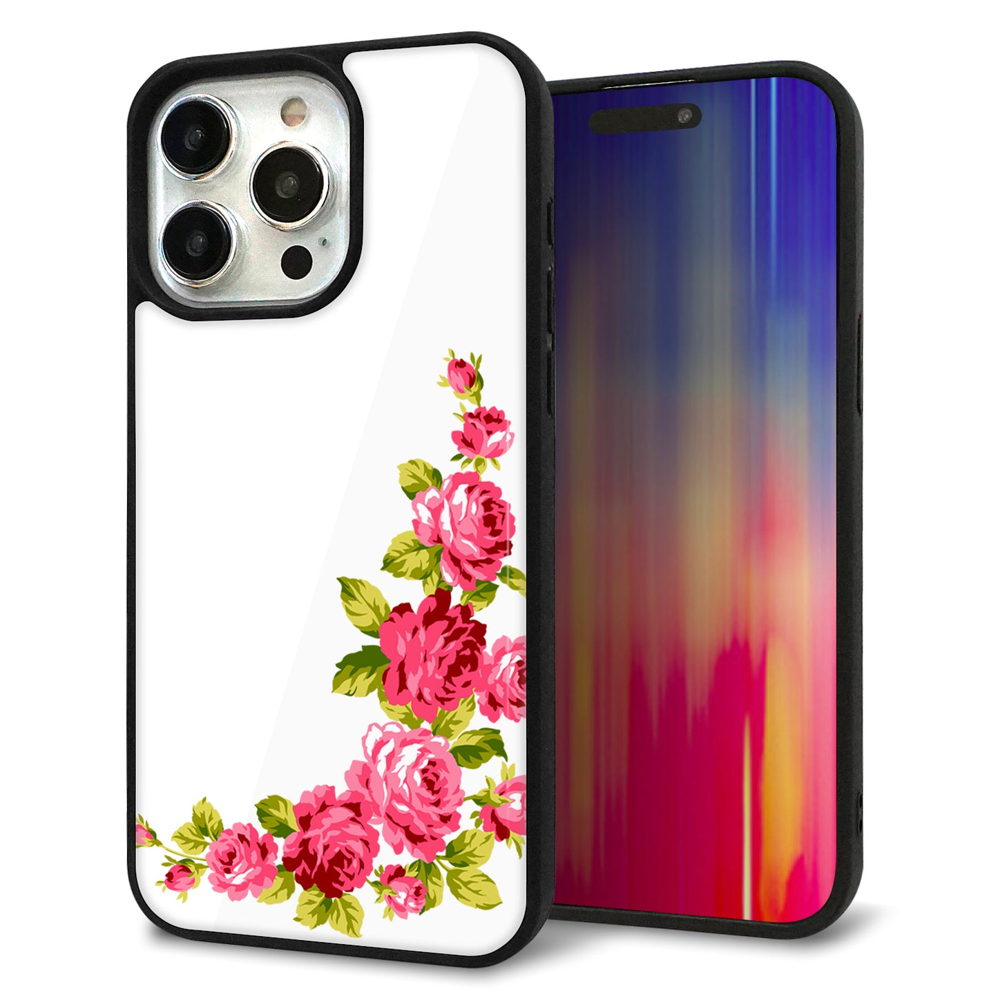 iPhone15 Pro Max 強化ガラス&TPUスマホケース ガラプリ【VA825 バラのフレーム(白)】