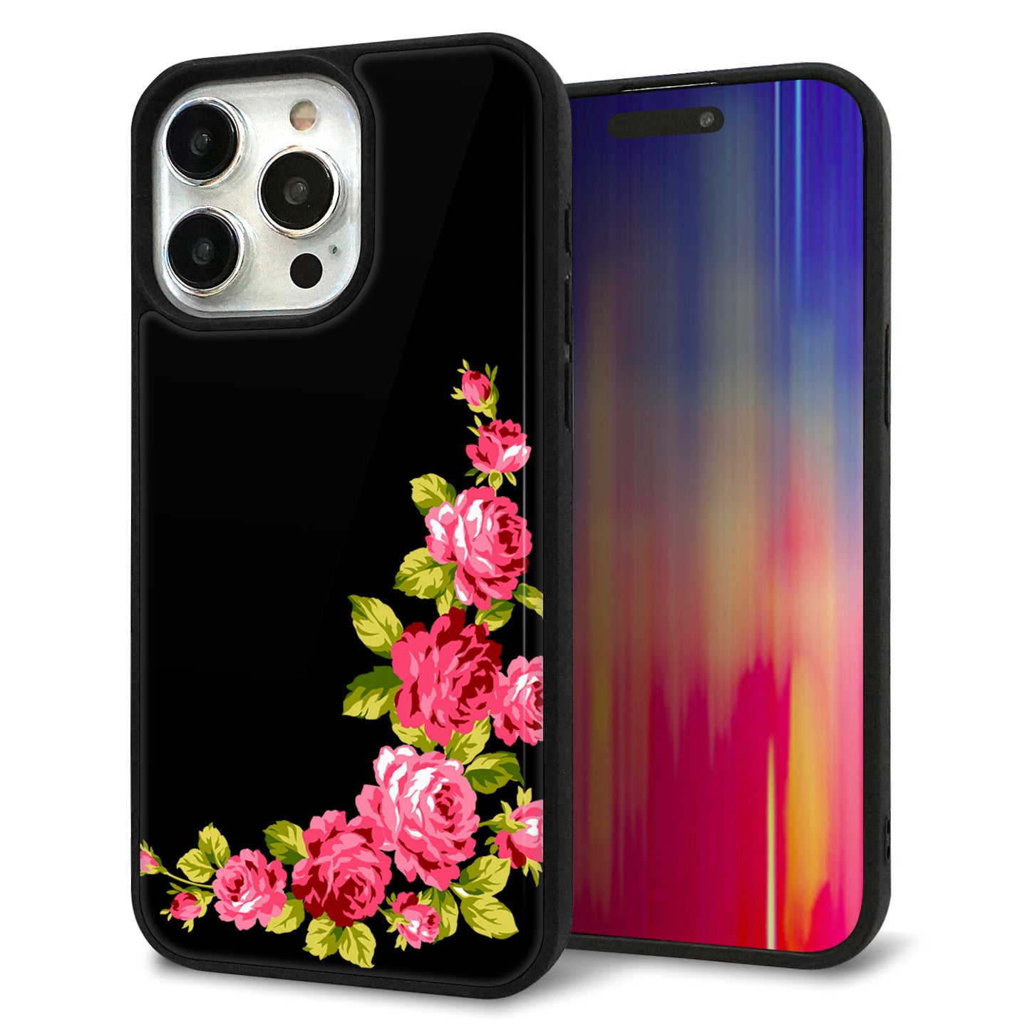 iPhone15 Pro Max 強化ガラス&TPUスマホケース ガラプリ【VA826 バラのフレーム(黒)】