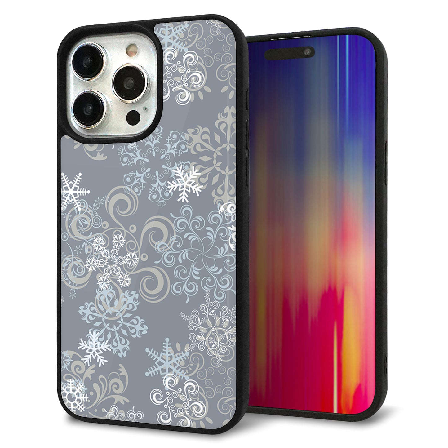 iPhone15 Pro Max 強化ガラス&TPUスマホケース ガラプリ【XA801 雪の結晶】