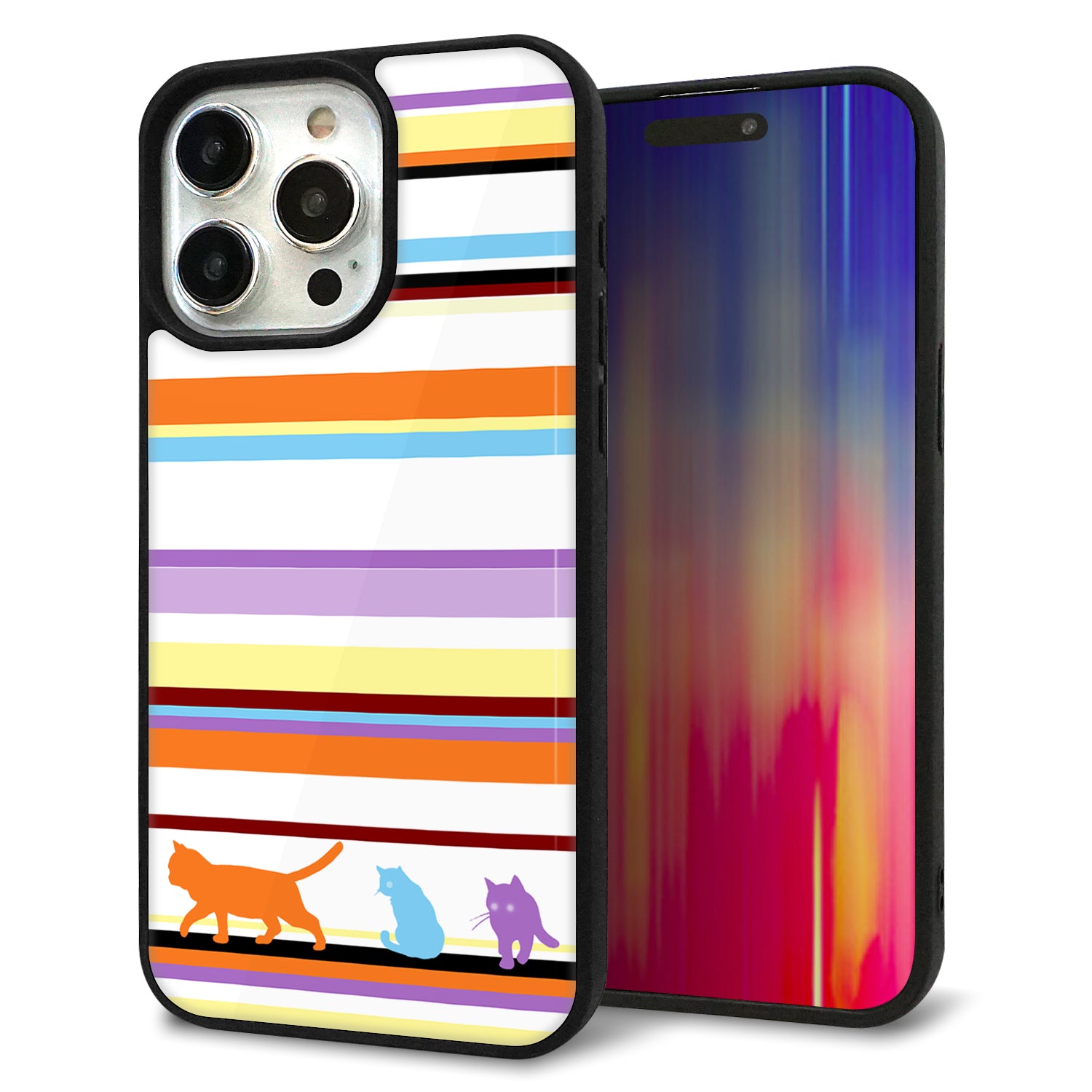 iPhone15 Pro Max 強化ガラス&TPUスマホケース ガラプリ【YA887 ストライプネコ01】