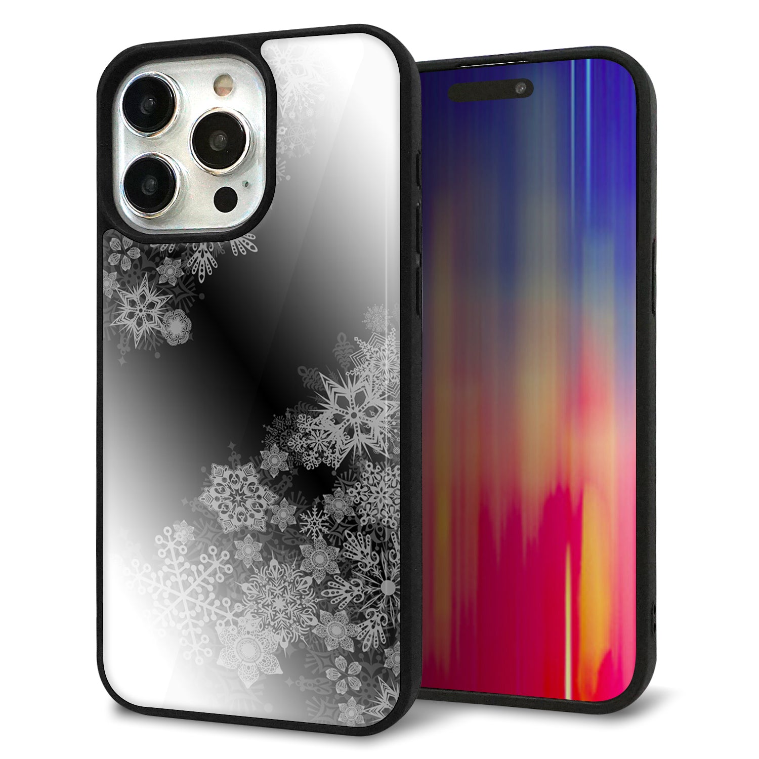 iPhone15 Pro Max 強化ガラス&TPUスマホケース ガラプリ【YJ340 モノトーン 雪の結晶 】