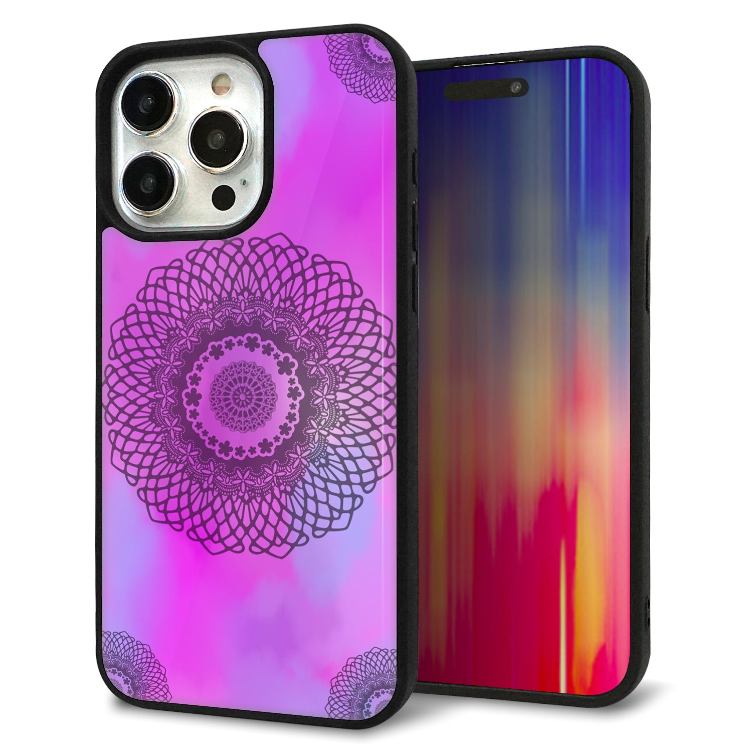 iPhone15 Pro Max 強化ガラス&TPUスマホケース ガラプリ【YJ344 レース】