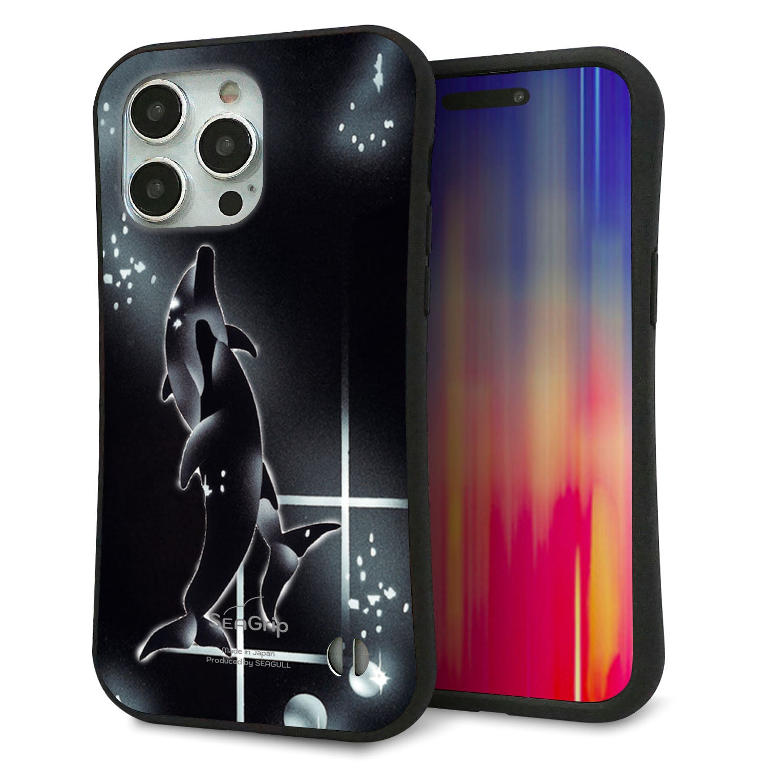 iPhone15 Pro Max スマホケース 「SEA Grip」 グリップケース Sライン 【158 ブラックドルフィン】 UV印刷