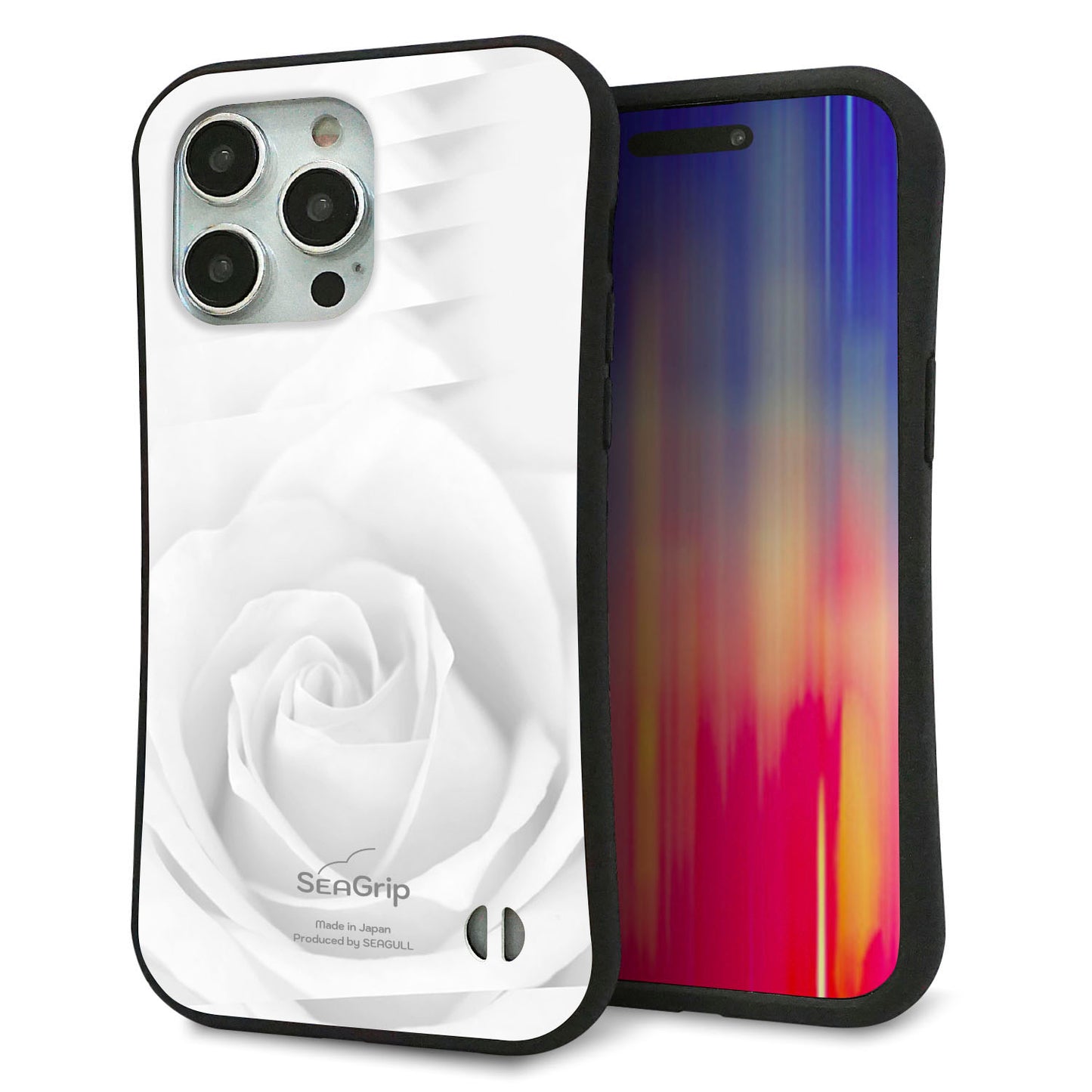 iPhone15 Pro Max スマホケース 「SEA Grip」 グリップケース Sライン 【402 ホワイトRose】 UV印刷