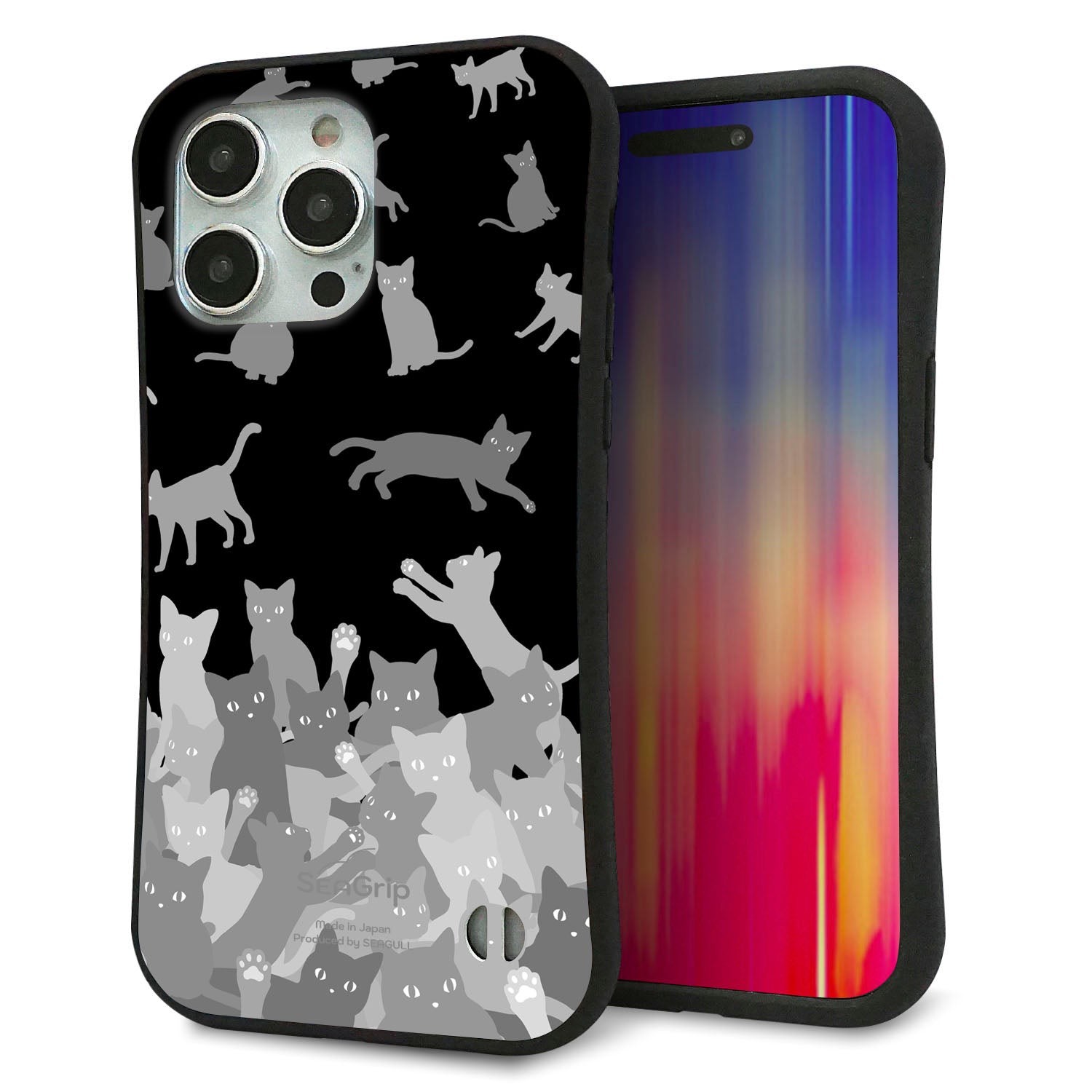 iPhone15 Pro Max スマホケース 「SEA Grip」 グリップケース Sライン 【AG887 ネコ積もり 黒】 UV印刷