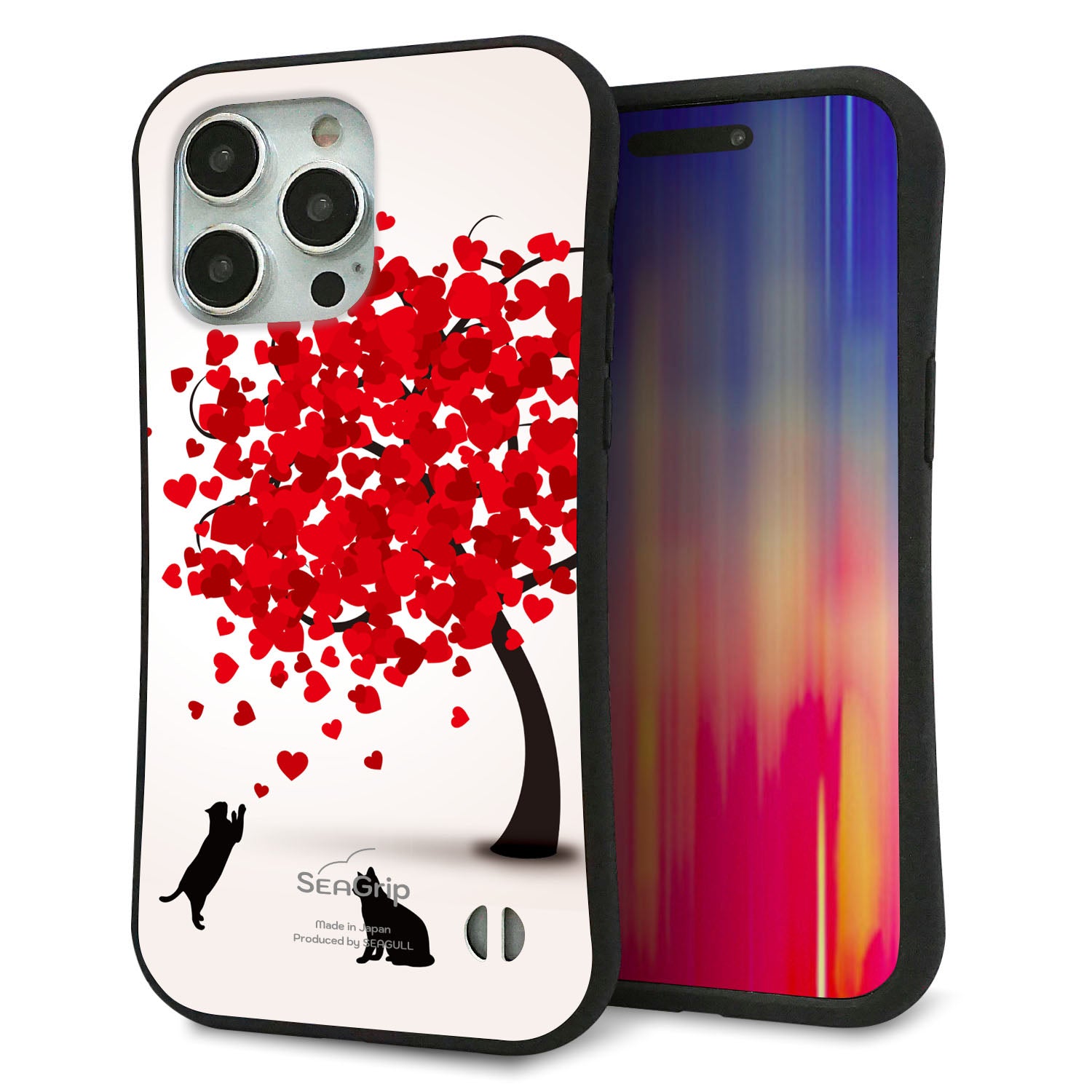 iPhone15 Pro Max スマホケース 「SEA Grip」 グリップケース Sライン 【EK915 二匹のネコとハートの木】 UV印刷