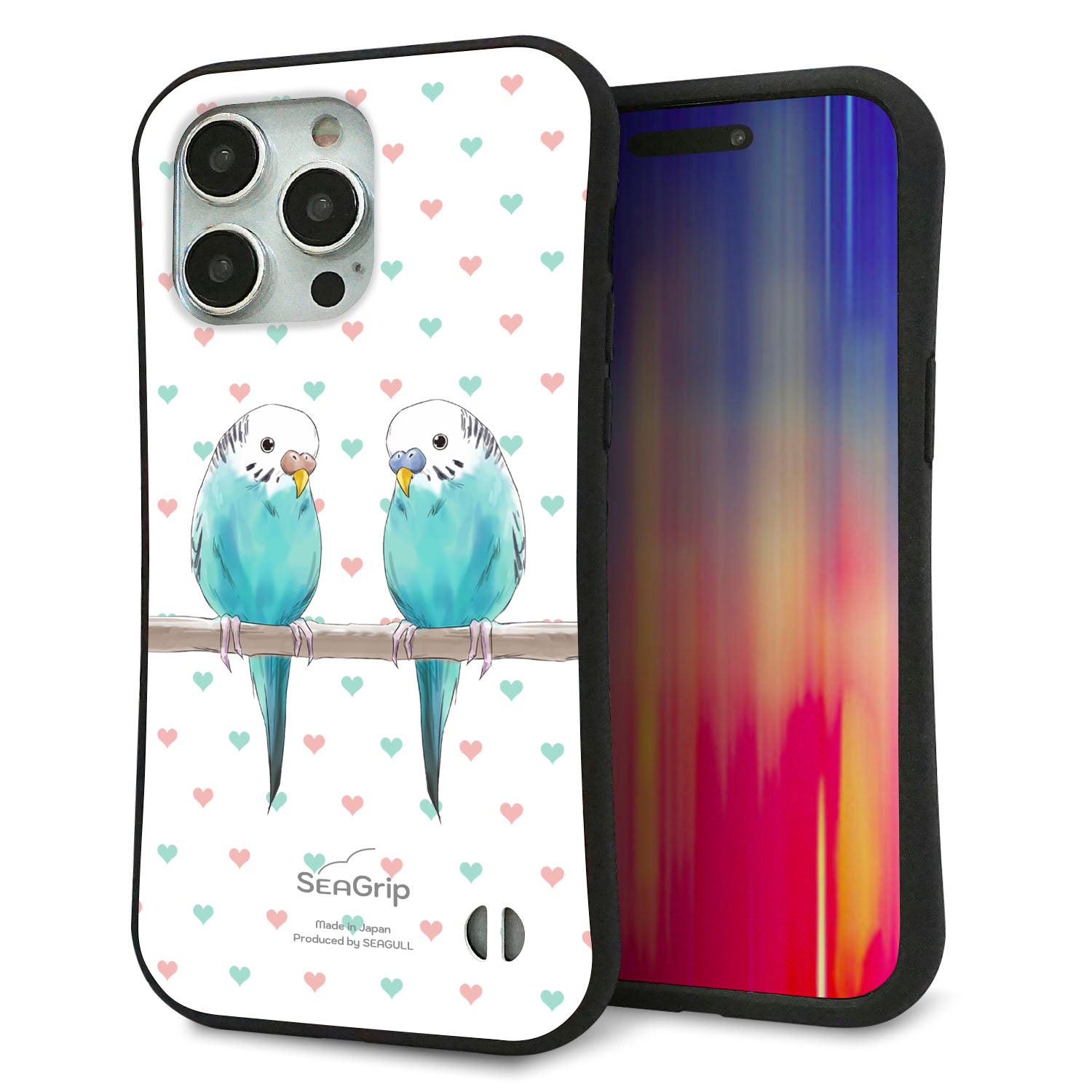 iPhone15 Pro Max スマホケース 「SEA Grip」 グリップケース Sライン 【HA272 インコブルー ハート】 UV印刷