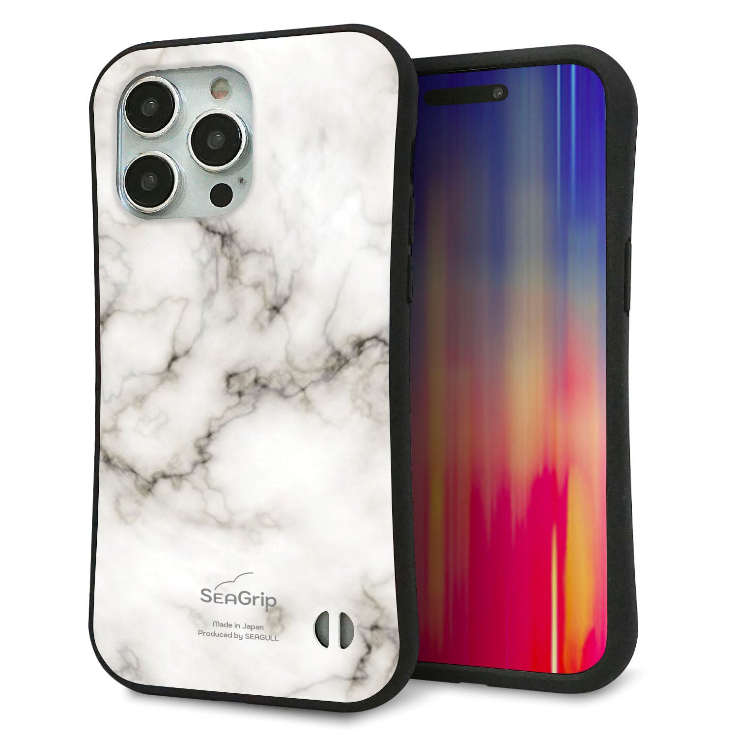 iPhone15 Pro Max スマホケース 「SEA Grip」 グリップケース Sライン 【KM871 大理石WH】 UV印刷