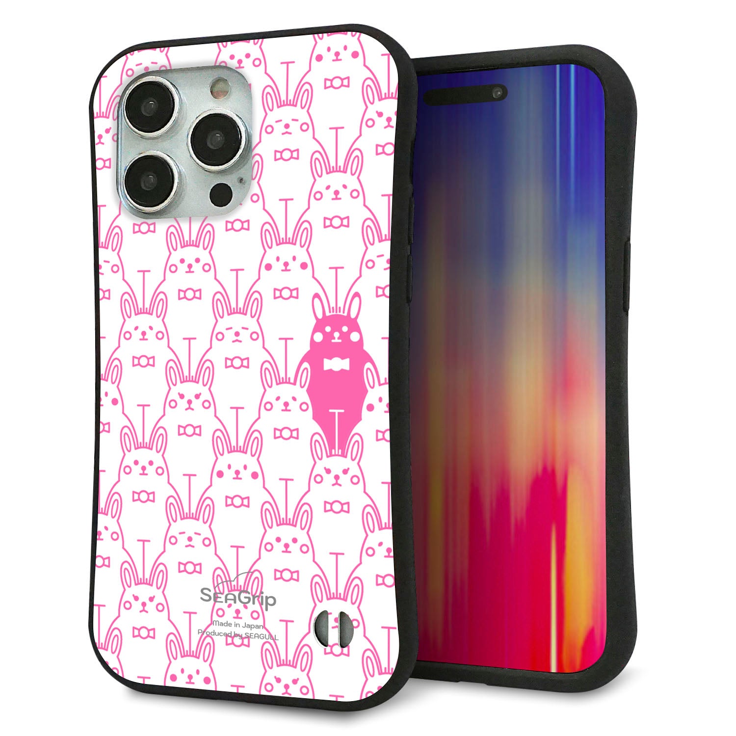 iPhone15 Pro Max スマホケース 「SEA Grip」 グリップケース Sライン 【MA914 パターン ウサギ】 UV印刷