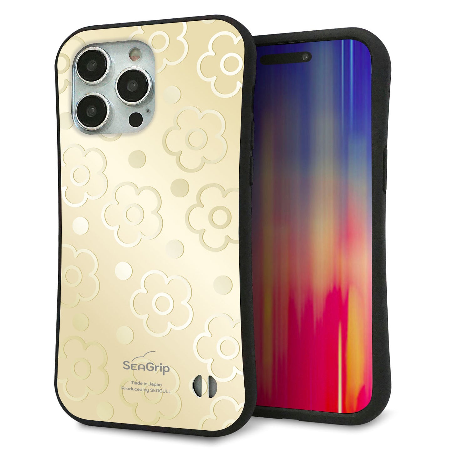 iPhone15 Pro Max スマホケース 「SEA Grip」 グリップケース Sライン 【SC842 エンボス風デイジーシンプル(ベージュ)】 UV印刷