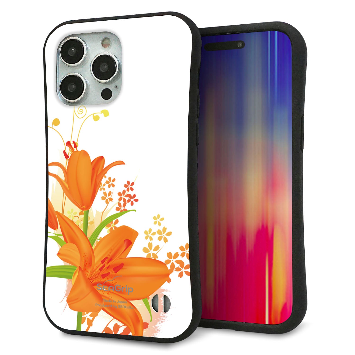 iPhone15 Pro Max スマホケース 「SEA Grip」 グリップケース Sライン 【SC848 ユリ(オレンジ)】 UV印刷