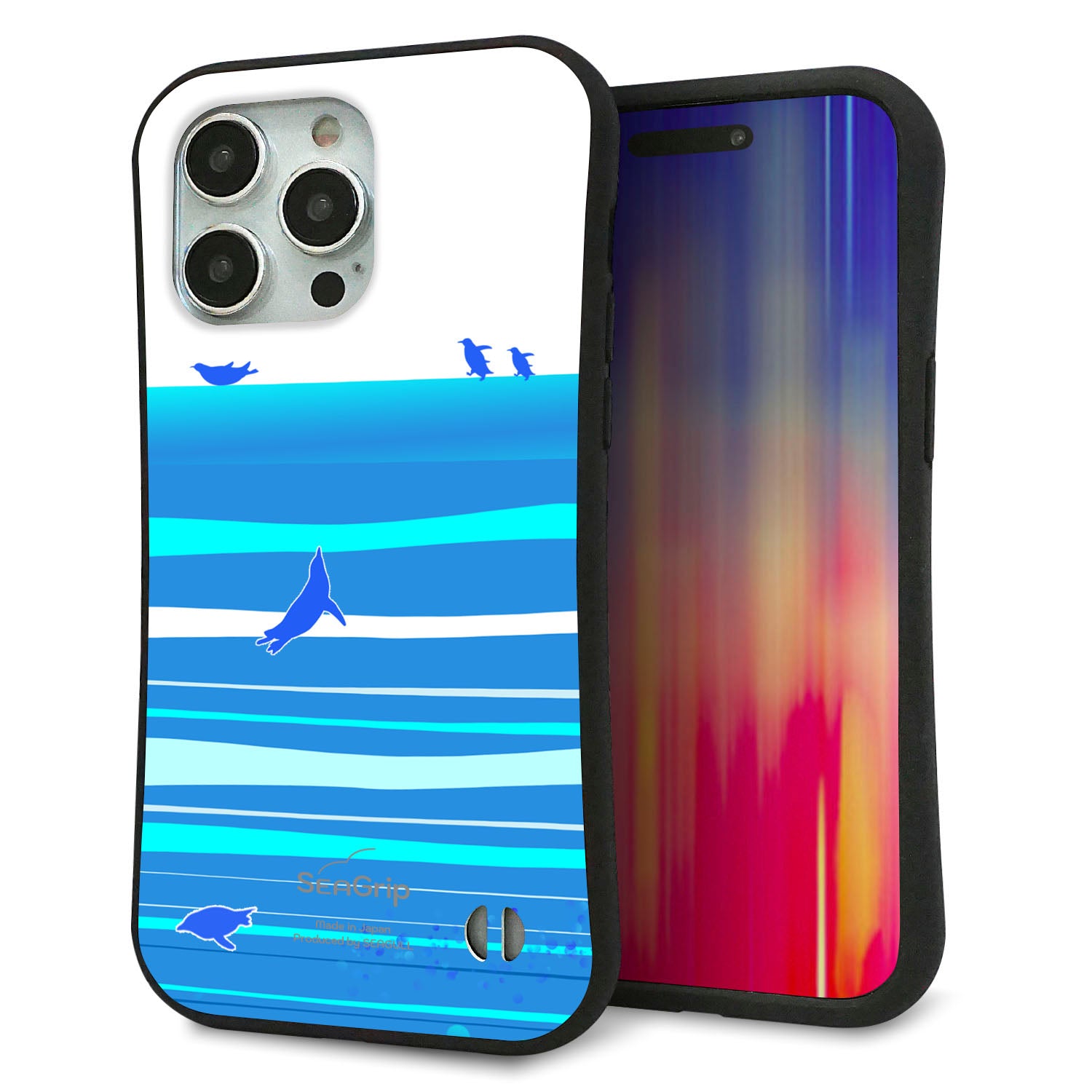 iPhone15 Pro Max スマホケース 「SEA Grip」 グリップケース Sライン 【YB920 ペンギン01】 UV印刷