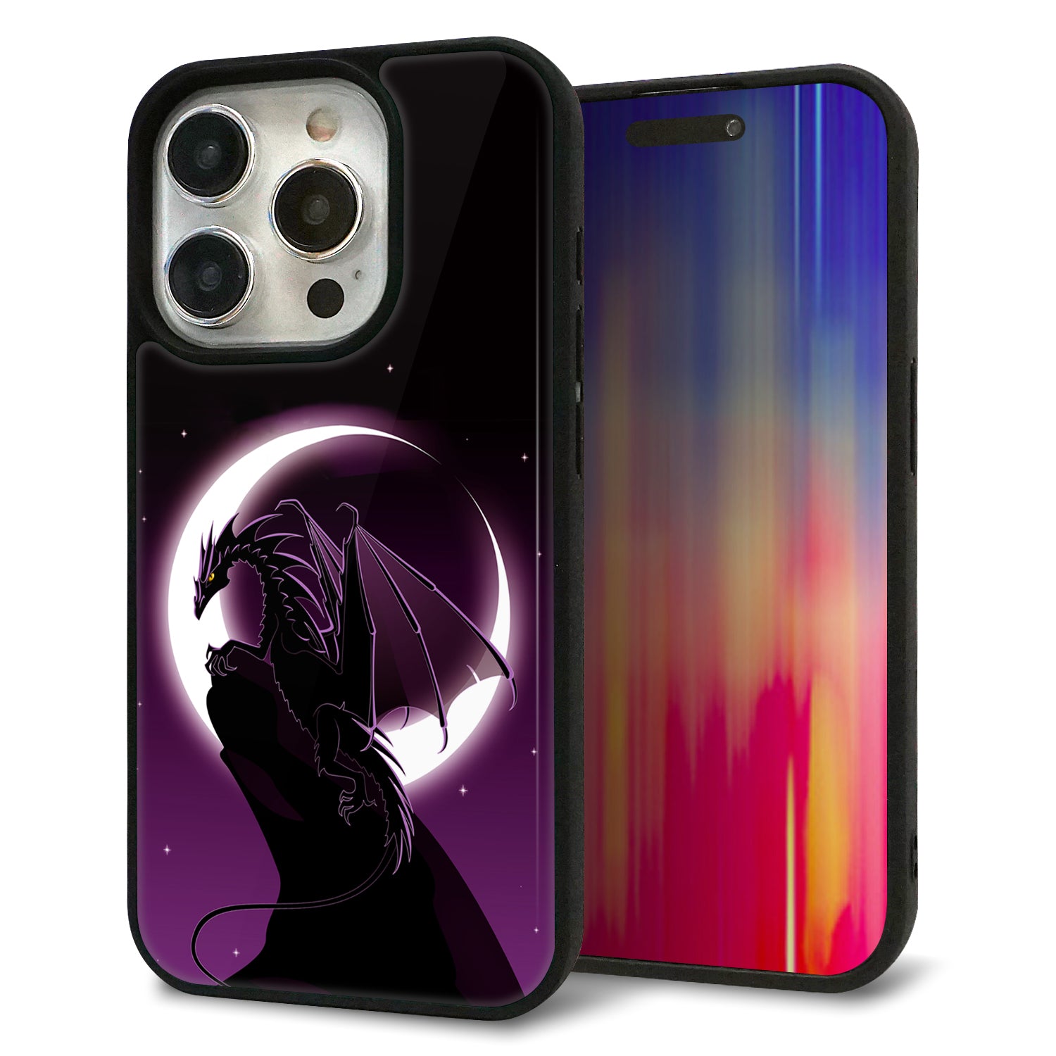 iPhone15 Pro 強化ガラス&TPUスマホケース ガラプリ【037 三日月とドラゴン】