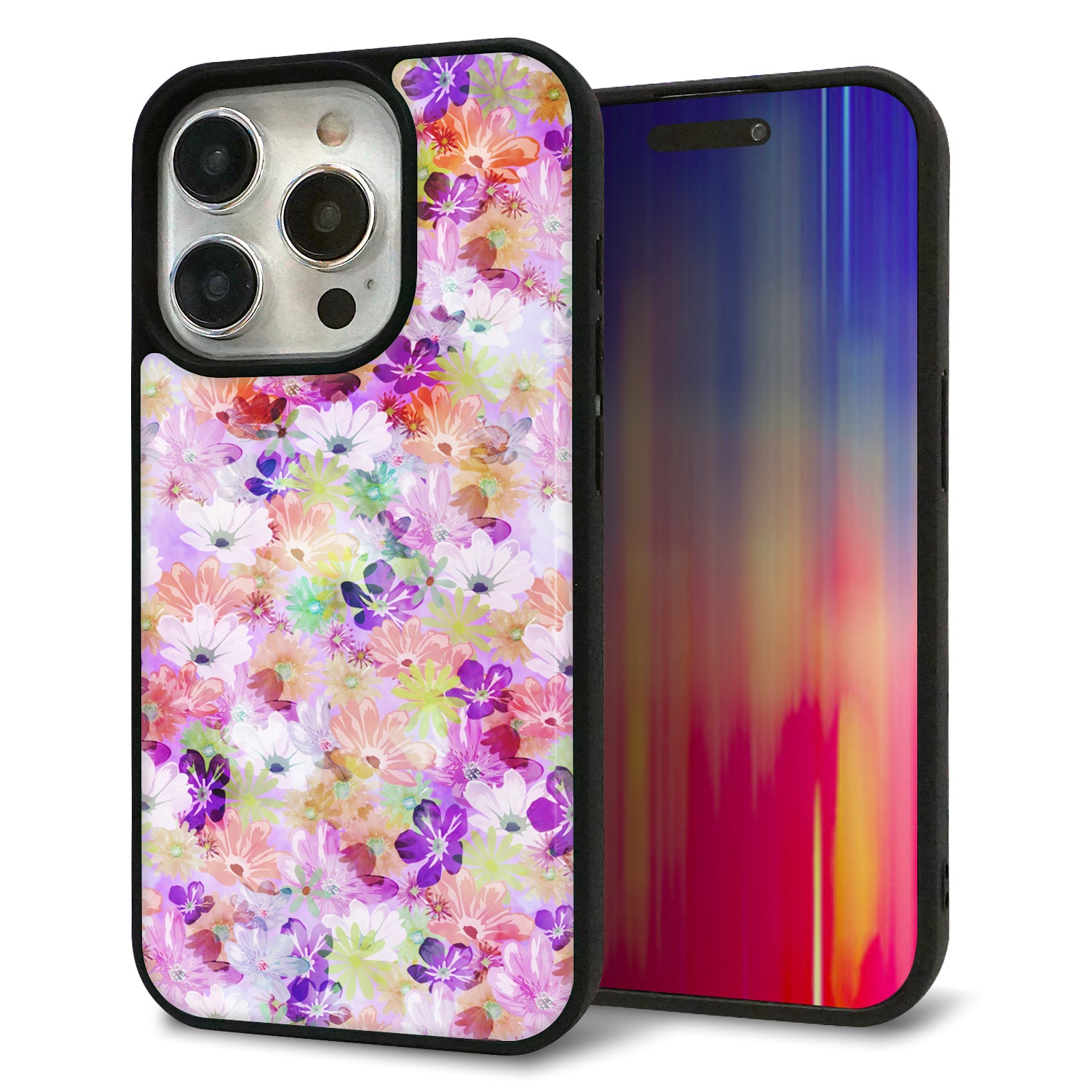 iPhone15 Pro 強化ガラス&TPUスマホケース ガラプリ【SC873 リバティプリント プレスドフラワー(パープル)】
