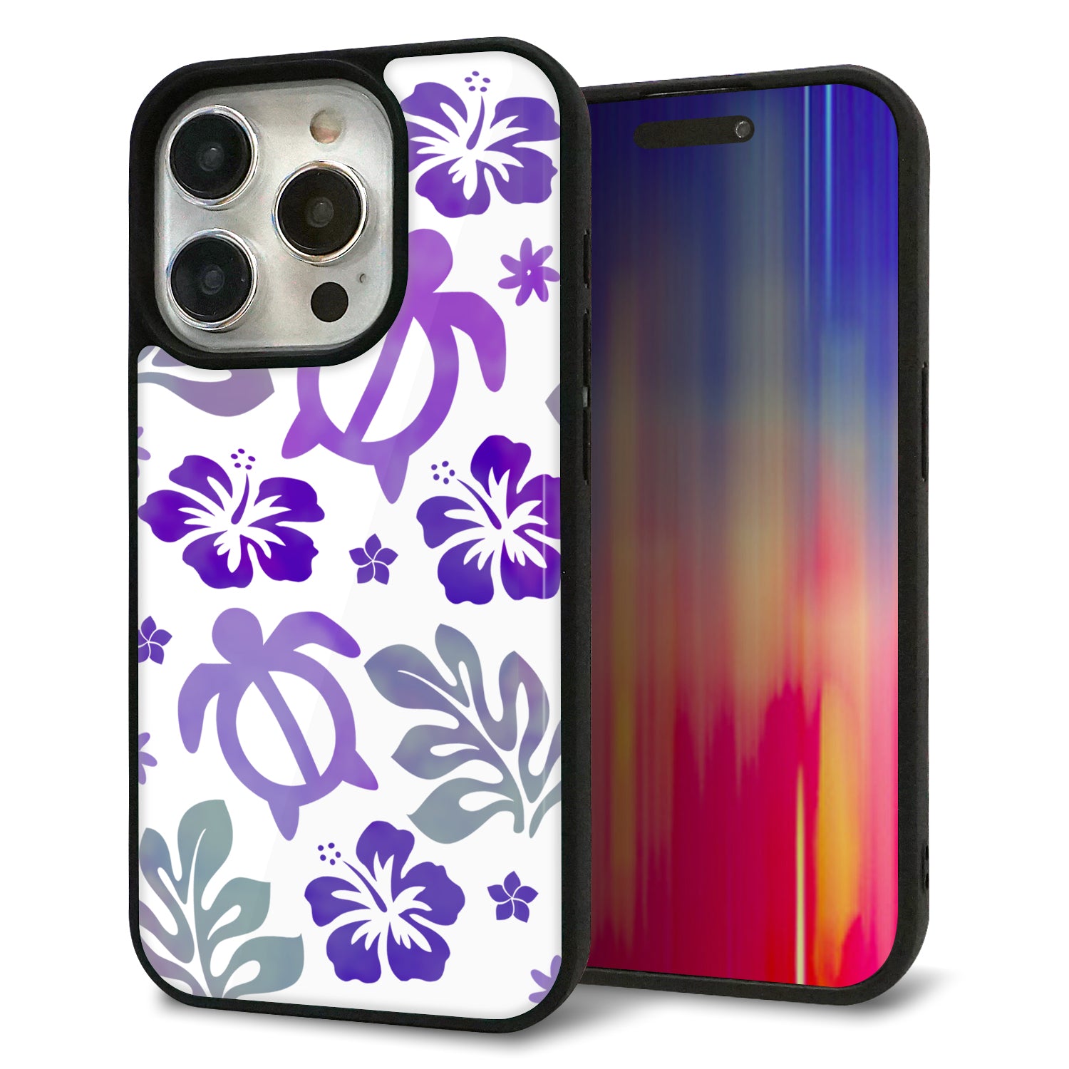 iPhone15 Pro 強化ガラス&TPUスマホケース ガラプリ【SC878 ハワイアンアロハホヌ(パープル)】