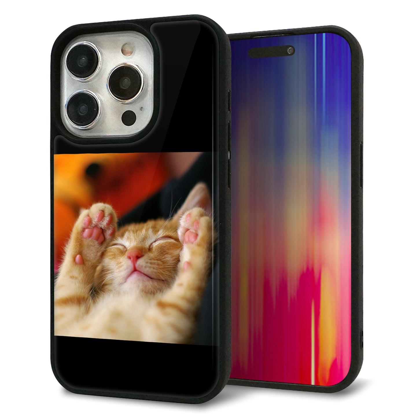 iPhone15 Pro 強化ガラス&TPUスマホケース ガラプリ【VA804 爆睡するネコ】