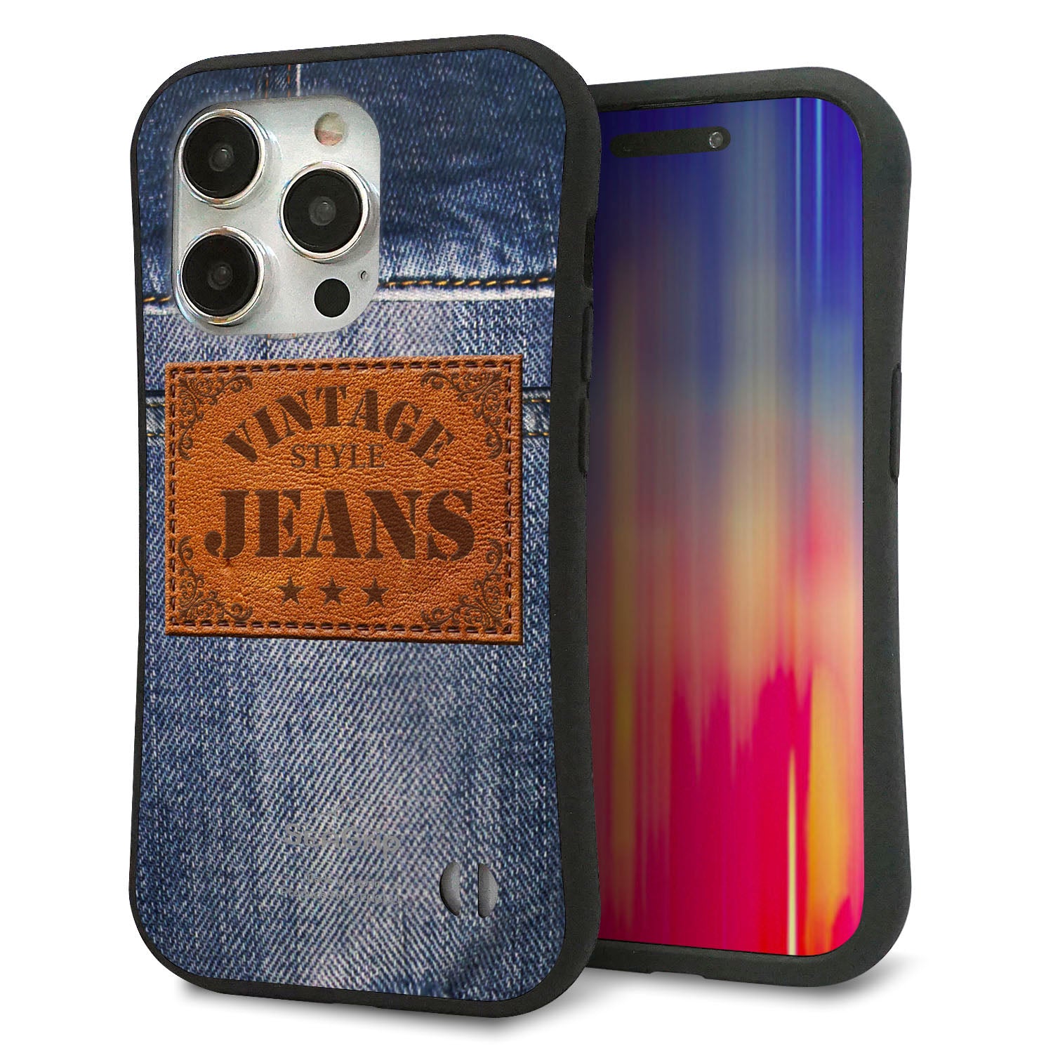iPhone15 Pro スマホケース 「SEA Grip」 グリップケース Sライン 【SC921 ダメージデニム レザータグ】 UV印刷