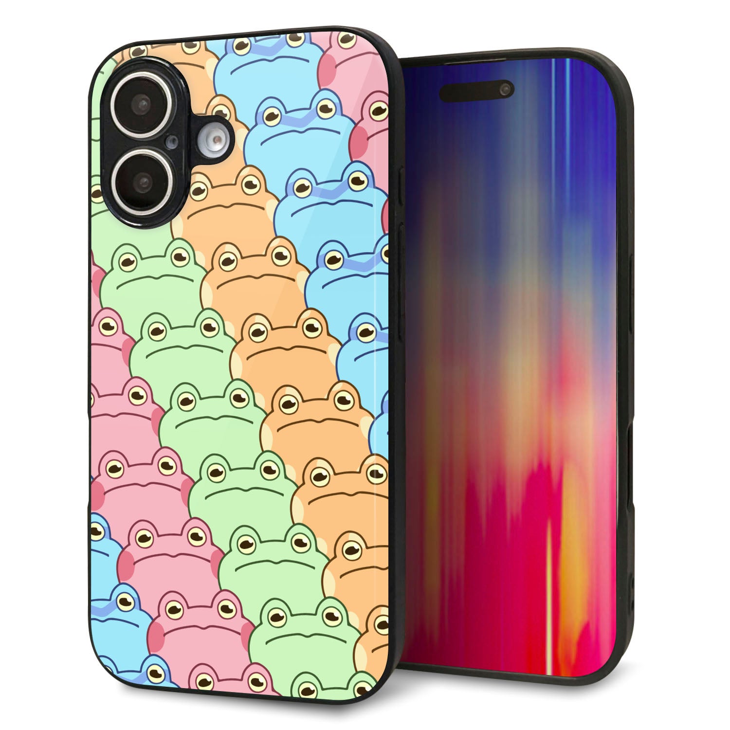 iPhone16 強化ガラス&TPUスマホケース ガラプリ【HA279 カエル柄】