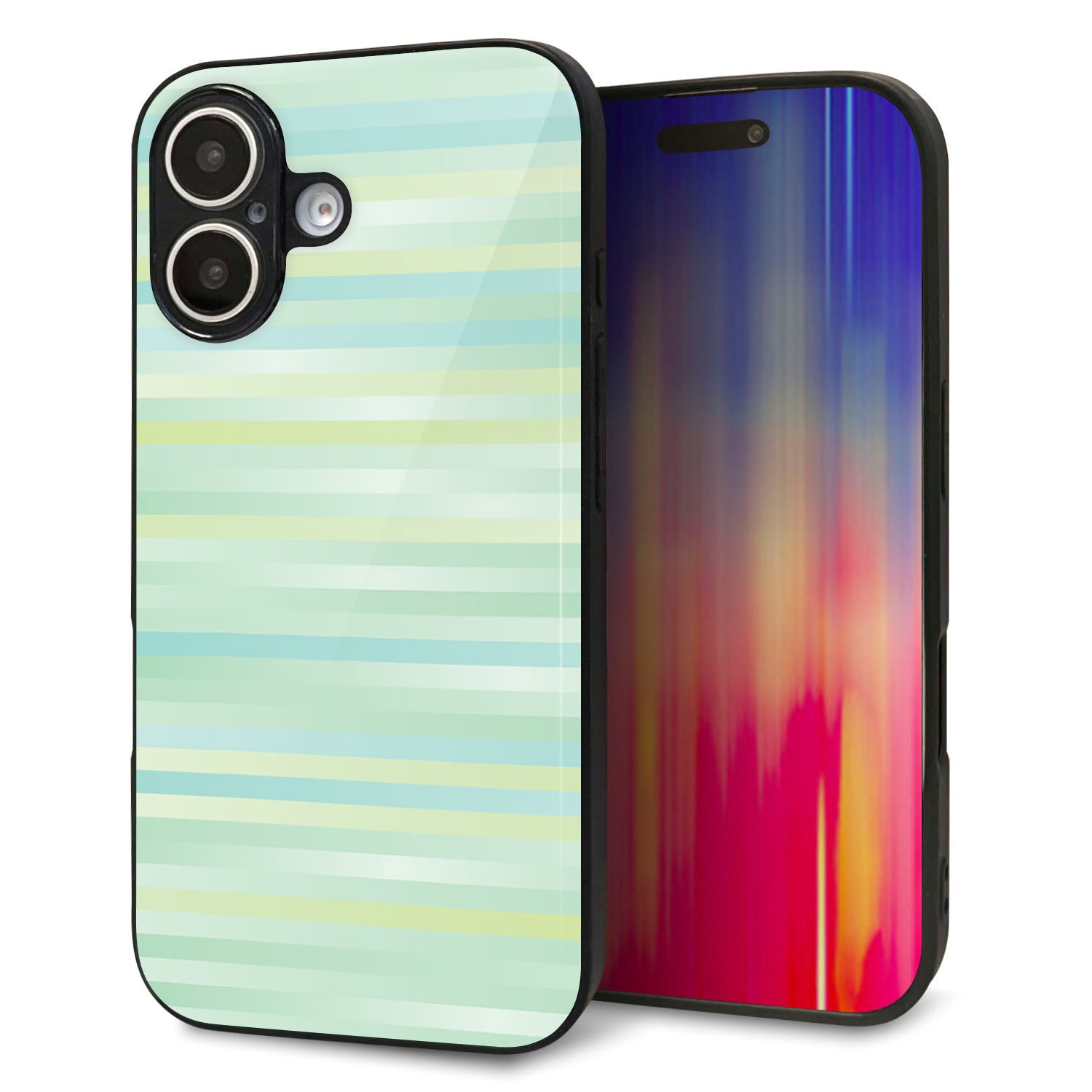 iPhone16 強化ガラス&TPUスマホケース ガラプリ【IB908 グラデーションボーダー_グリーン】