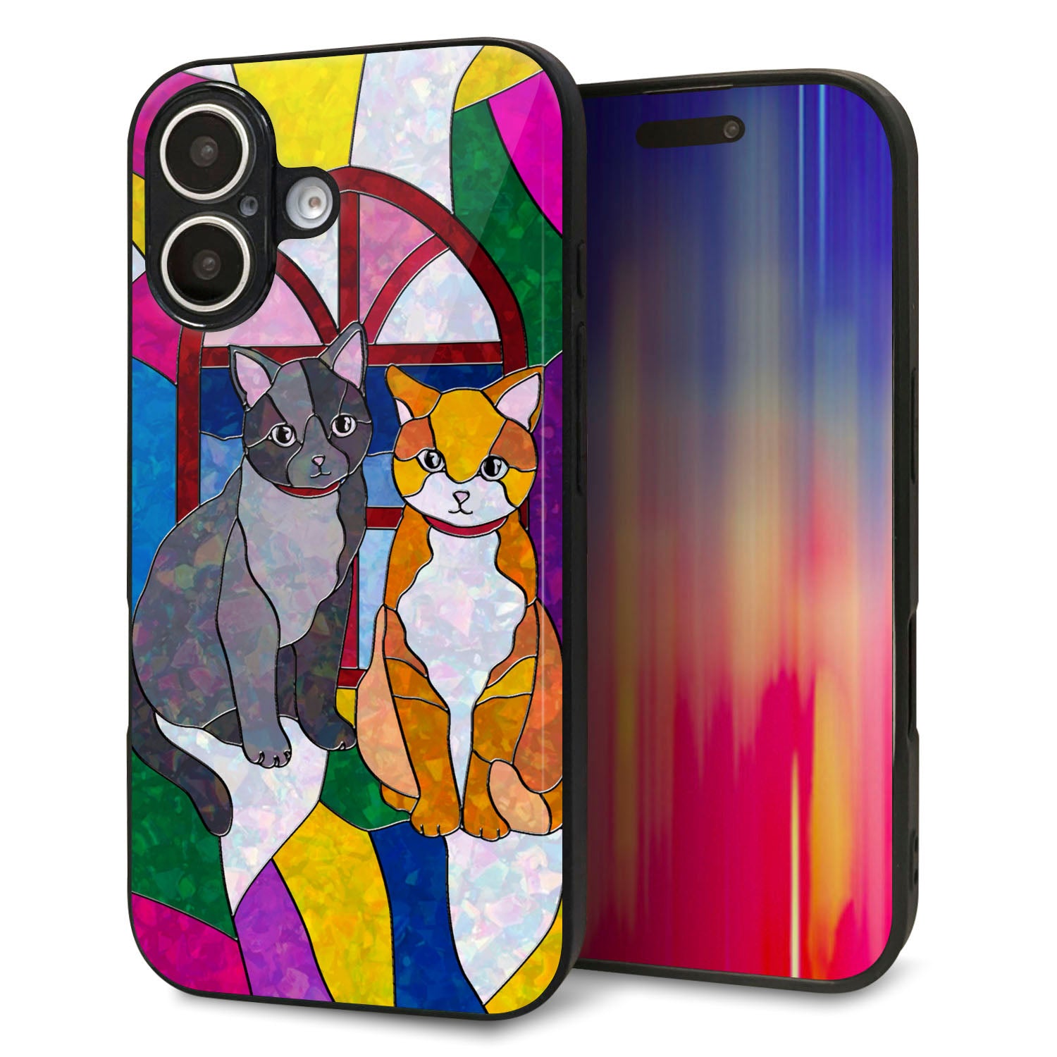 iPhone16 強化ガラス&TPUスマホケース ガラプリ【MA995 ステンドグラス ネコ】
