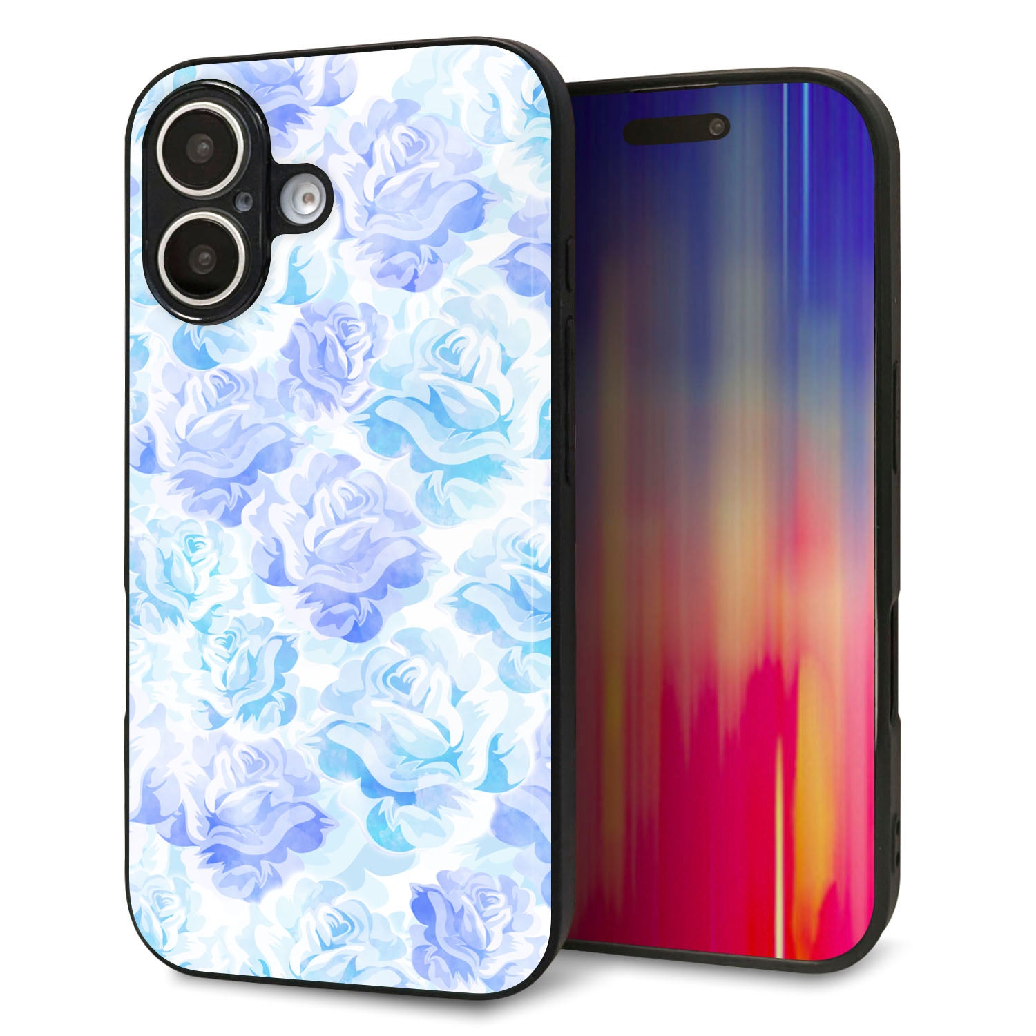 iPhone16 強化ガラス&TPUスマホケース ガラプリ【SC927 ローズ ブルー】
