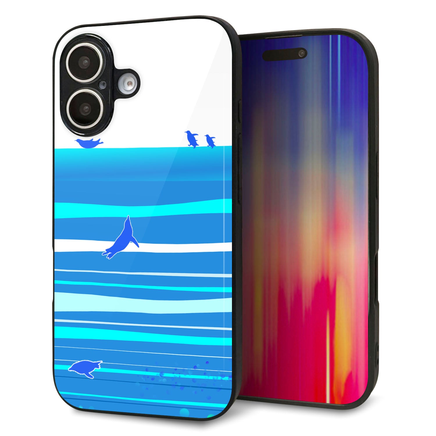 iPhone16 強化ガラス&TPUスマホケース ガラプリ【YB920 ペンギン01】
