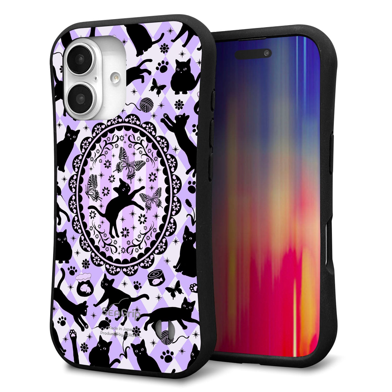 iPhone16 スマホケース 「SEA Grip」 グリップケース Sライン 【AG879 ネコがいっぱいダイヤ柄 パープル】 UV印刷