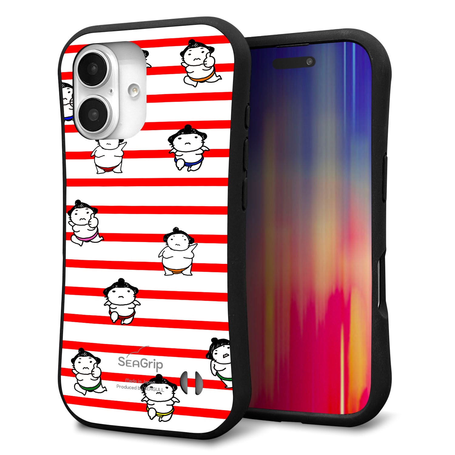 iPhone16 スマホケース 「SEA Grip」 グリップケース Sライン 【YK821 お相撲さん レッド】 UV印刷
