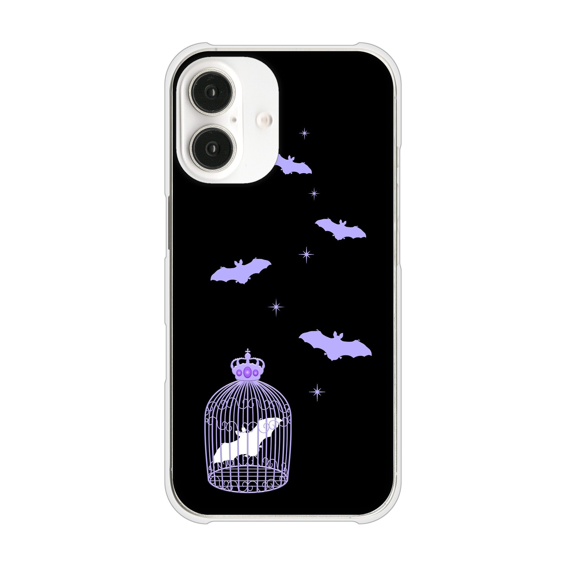 iPhone16 高画質仕上げ 背面印刷 ハードケースむかいあぐる こうもりの王冠鳥かご