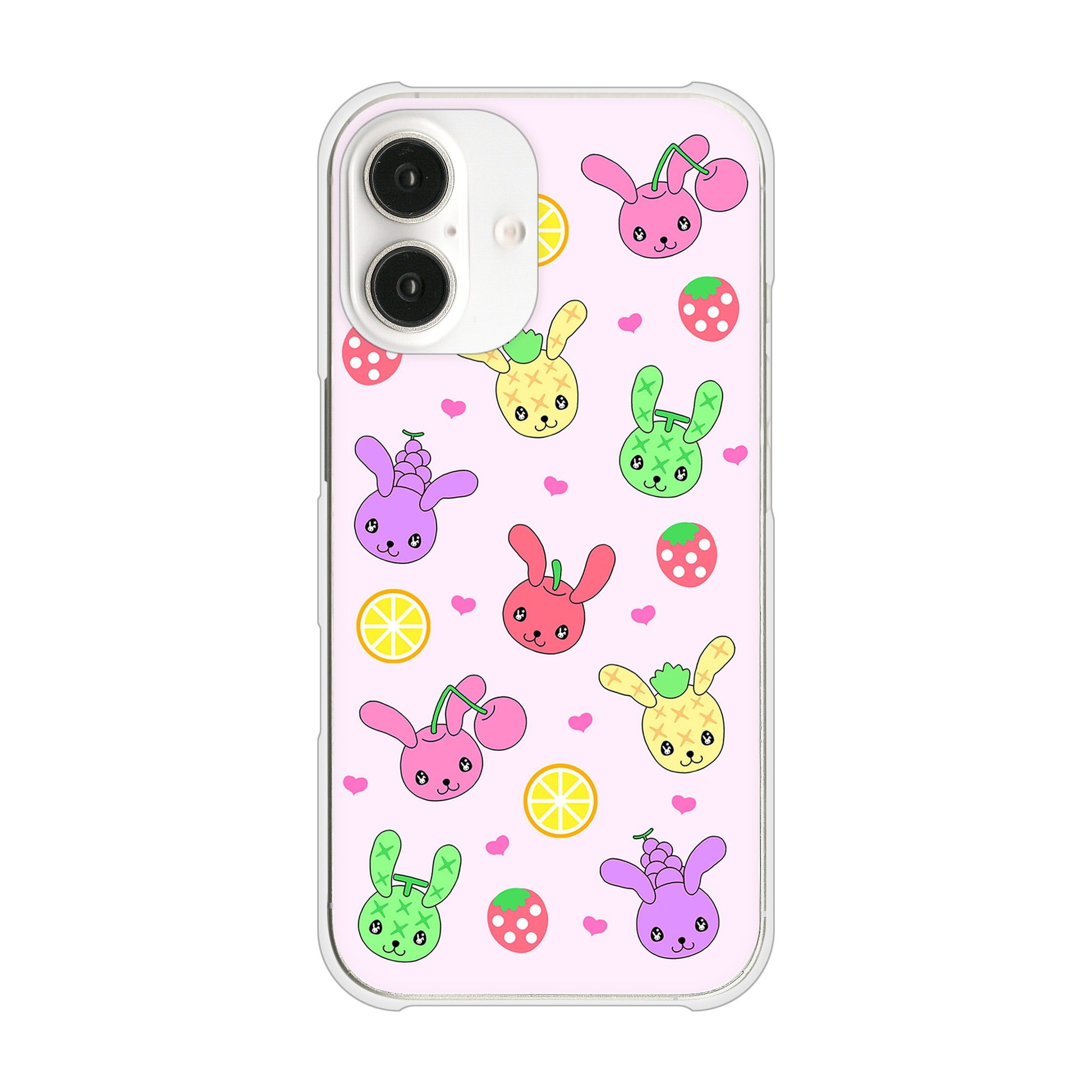 • iPhone16 高画質仕上げ 背面印刷 ハードケースむかいあぐる フルーツうさぎのブルーラビッツ