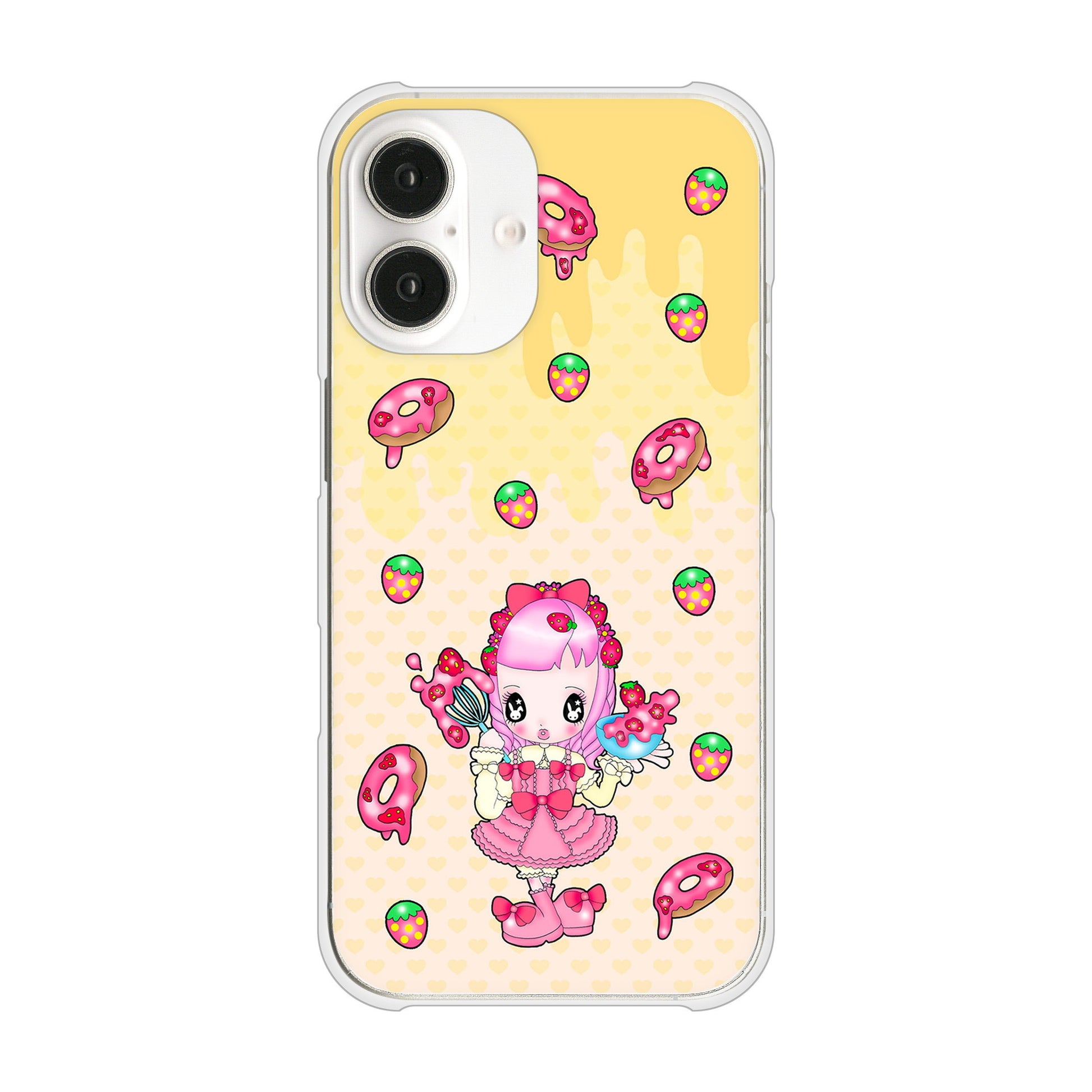 iPhone16 高画質仕上げ 背面印刷 ハードケースむかいあぐる ストロベリードーナツ