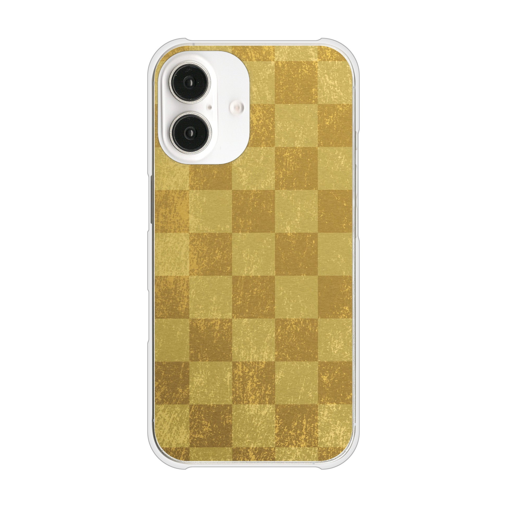 iPhone16 高画質仕上げ 背面印刷 ハードケース 【619 市松模様-金(骨董風に傷んだイメージ)】