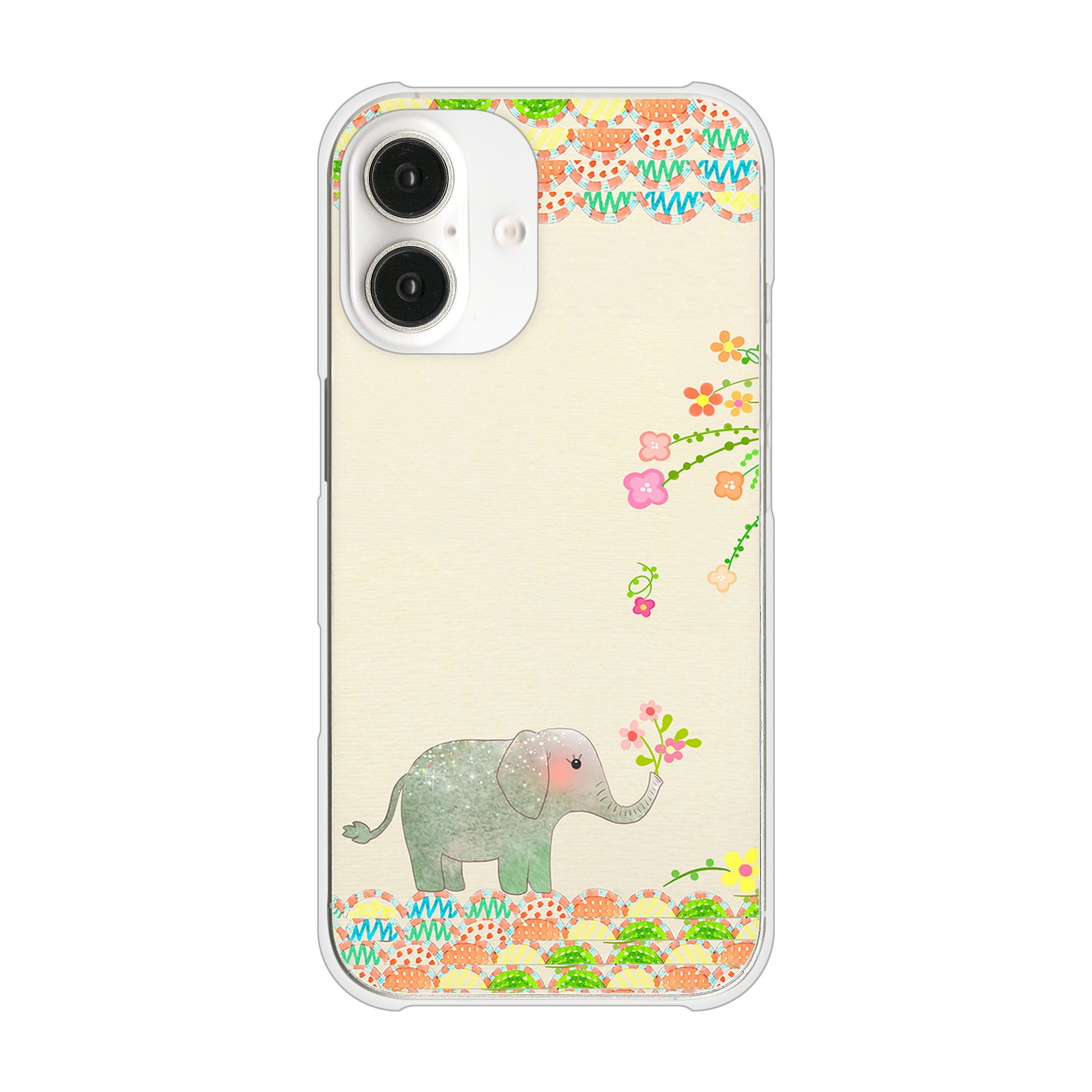 iPhone16 高画質仕上げ 背面印刷 ハードケース 【1039 お散歩ゾウさん】