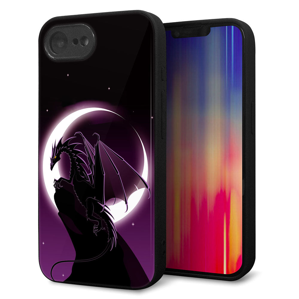 iPhone16e 強化ガラス&TPUスマホケース ガラプリ【037 三日月とドラゴン】