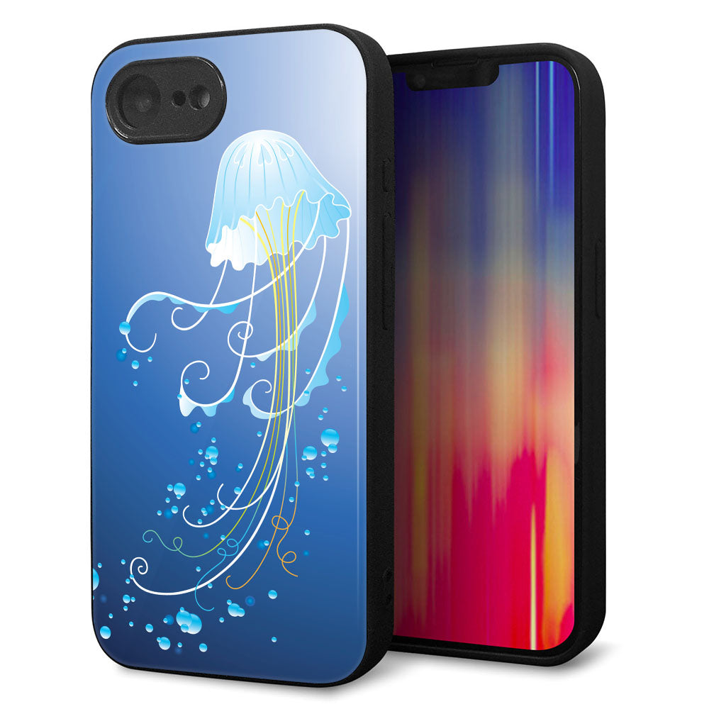 iPhone16e 強化ガラス&TPUスマホケース ガラプリ【362 ジェリーフィシュ】