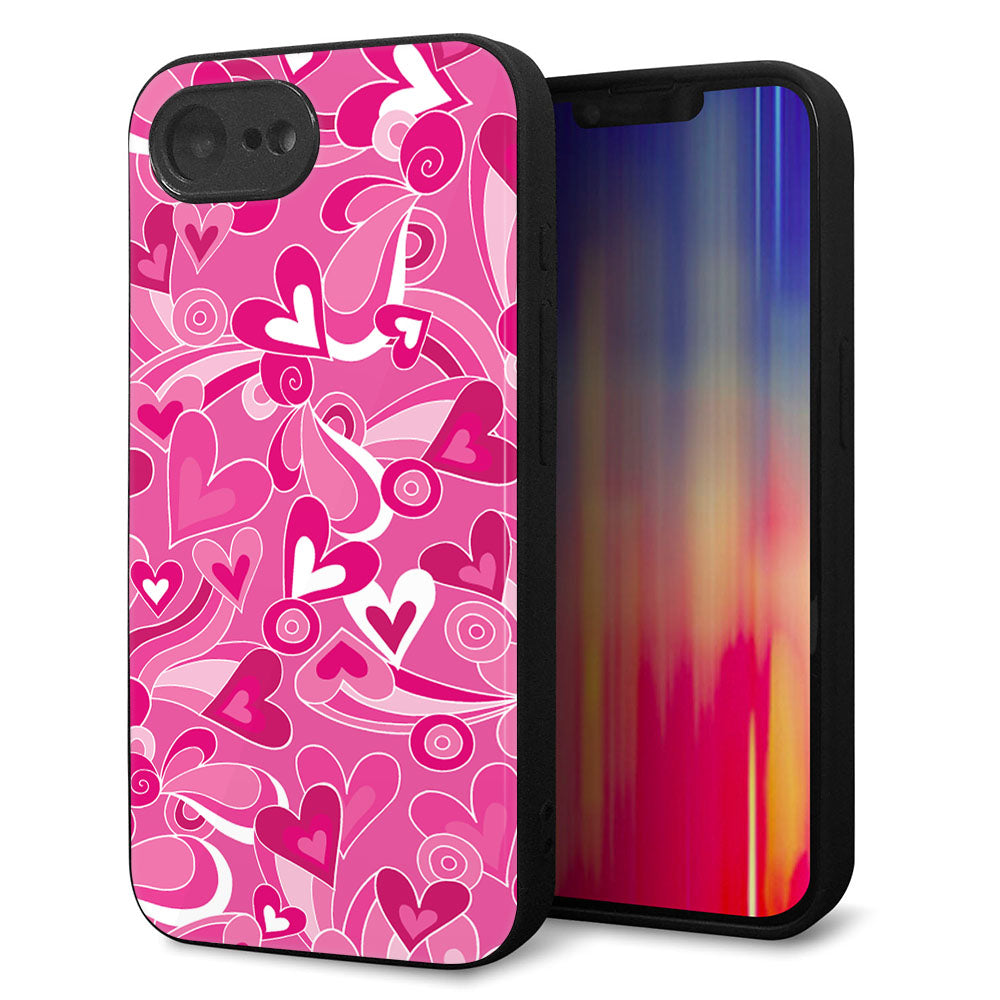 iPhone16e 強化ガラス&TPUスマホケース ガラプリ【383 ピンクのハート】