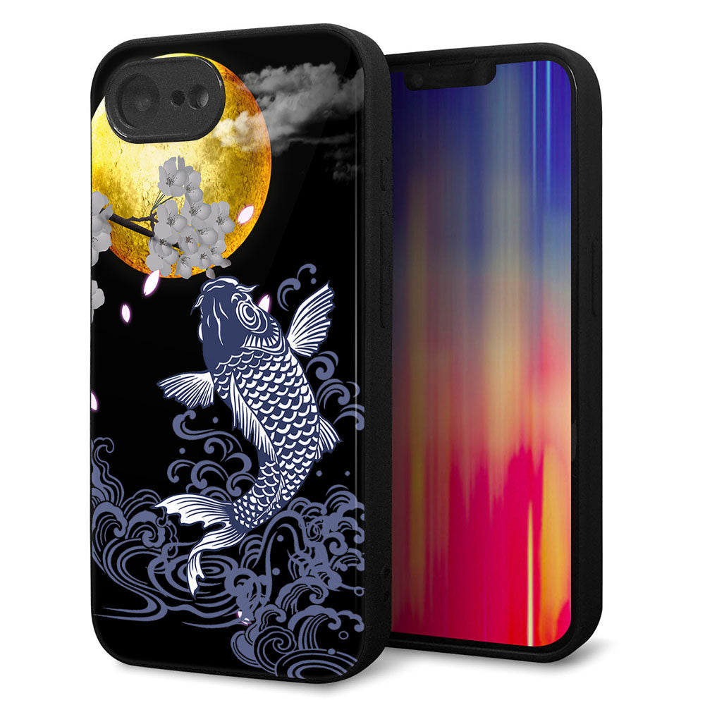 iPhone16e 強化ガラス&TPUスマホケース ガラプリ【1030 月と鯉】