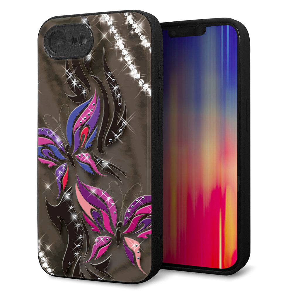 iPhone16e 強化ガラス&TPUスマホケース ガラプリ【1164 キラめくストーンと蝶】