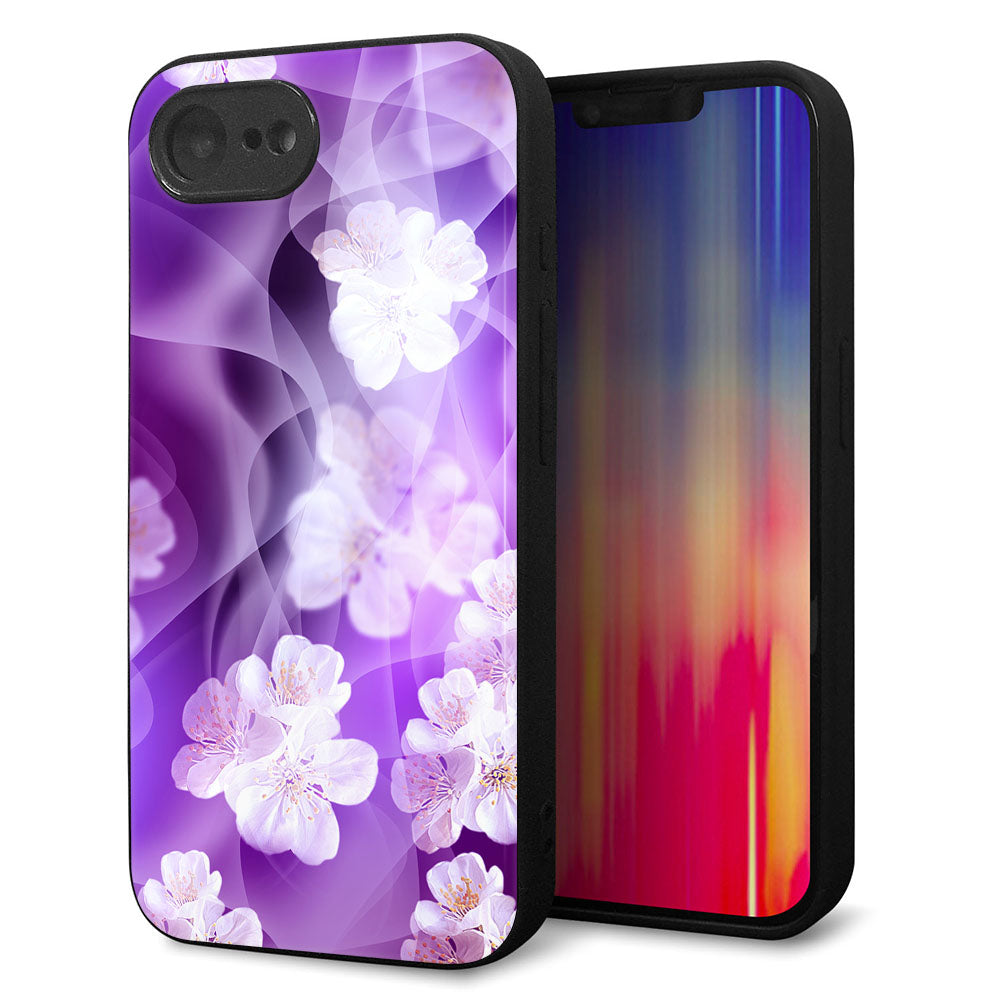 iPhone16e 強化ガラス&TPUスマホケース ガラプリ【1211 桜とパープルの風】