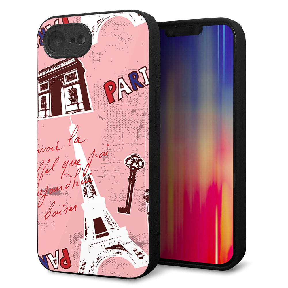 iPhone16e 強化ガラス&TPUスマホケース ガラプリ【EK813 ビューティフルパリレッド】