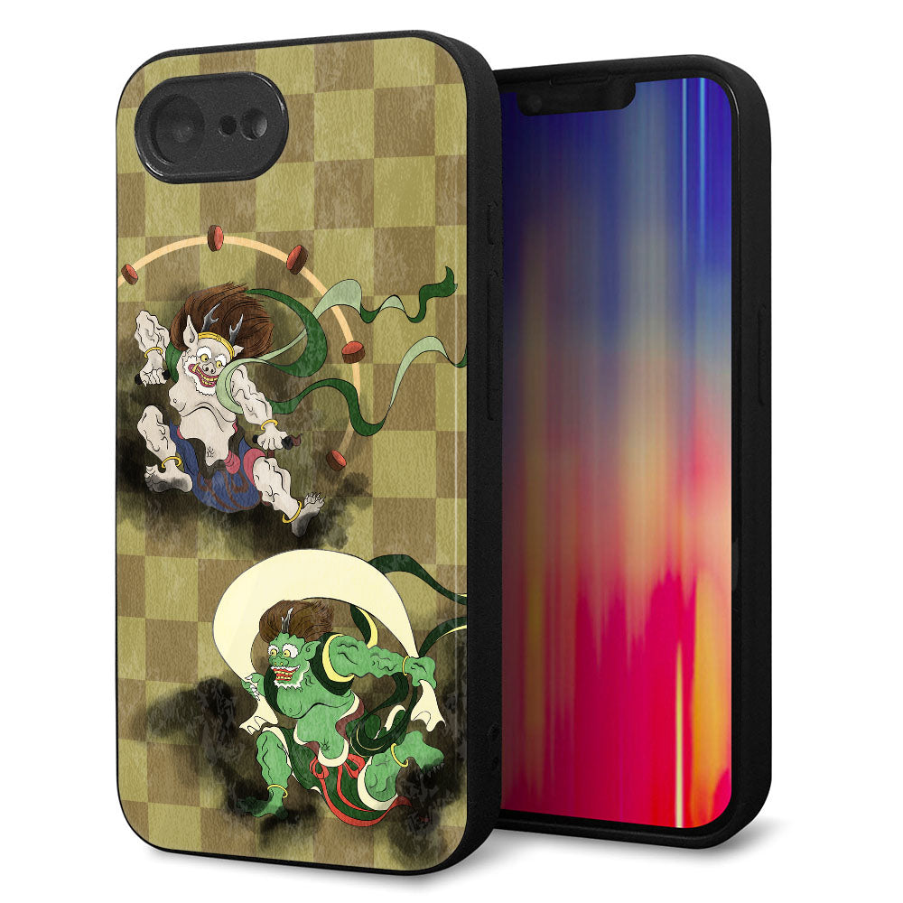 iPhone16e 強化ガラス&TPUスマホケース ガラプリ【HA236 風神雷神 金市松】